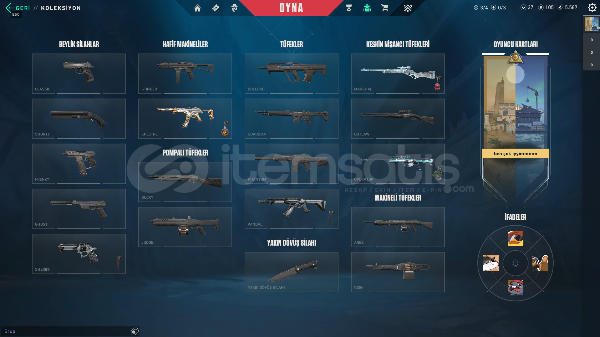 hesapta 5 adet skin vardır bunlar yağmacı vandal yağmacı sheriff yitik spectre kış harikası marshal takım ası operatör telefon numarası doğrulanmıştır fakat hat yoktur ortada güvence sorununuz kalmasın