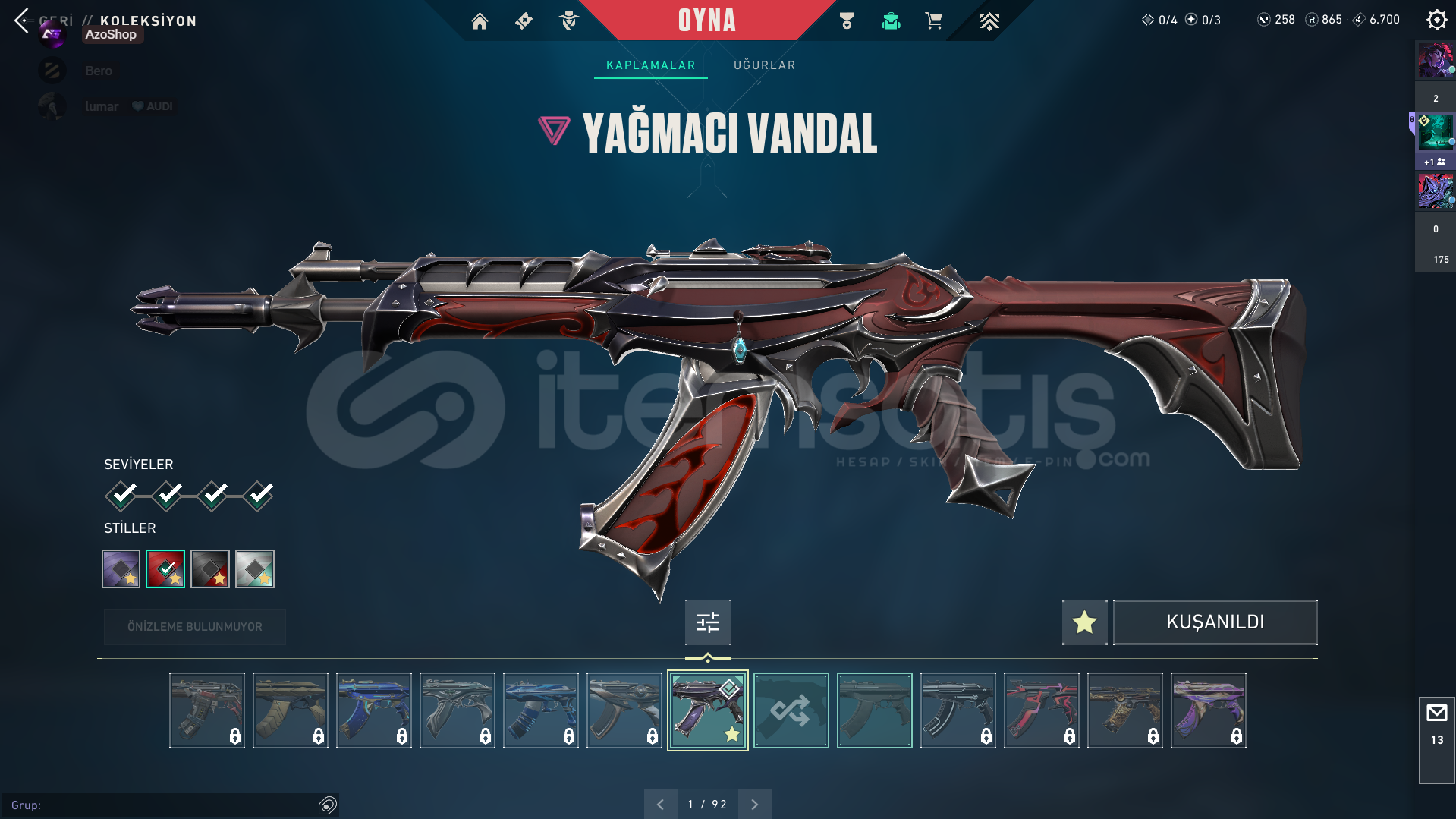 ⭐YAĞMACI VANDALLI +12 SKİNLİ EFSO HESAP⭐