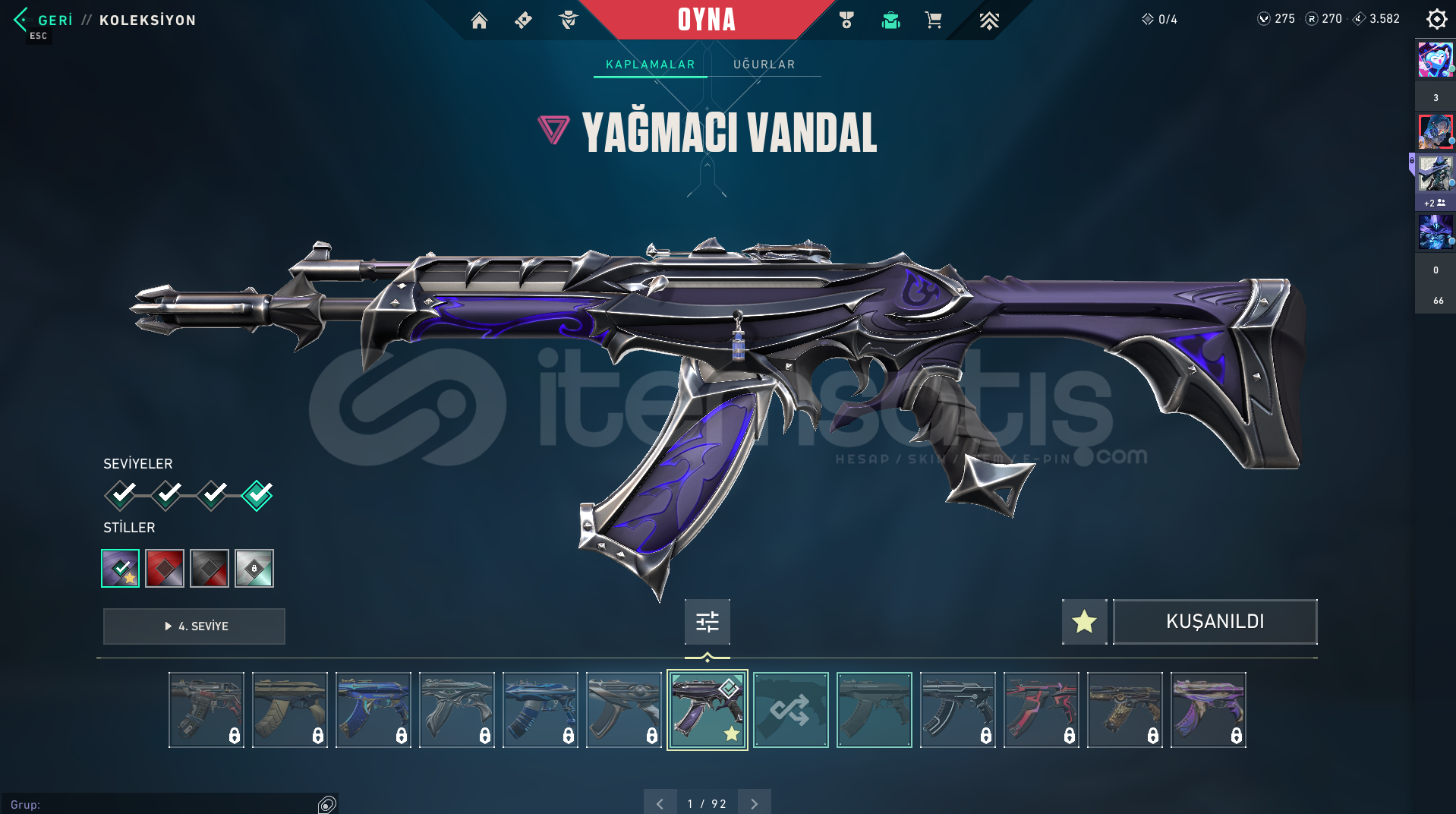 Valorant skinli E-Postalı hesaptırYAĞMACI VANDAL BULUNAN HESAPTIR.Rank: BRONZ 1Sunucu: TRMağaza: EUMailli hesaptır bilgileri size devredilmektedir, mevcut bilgileri kendi bilgileriniz ile değiştirebilirsiniz.Ürünler fotoğraftakiler ile bire bir aynı hesaptır, farklı hesap değildir