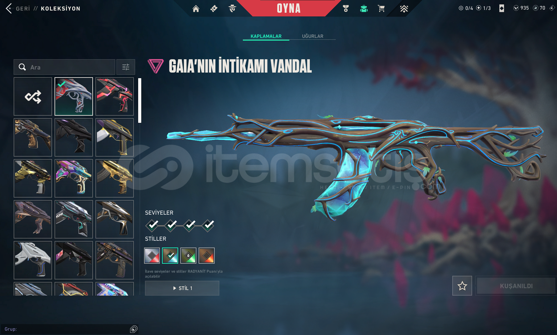 VANDAL: ONİ, İYON, YAĞMACI, GAİA, KAOSUN BAŞLANGICI, ASİL, EJDER, IŞIK MUHAFIZI, RGX, YILDIZ BELASI, DELİPOP, CHAMPİONS 2021 VANDAL, ANOMALİ, SÜRAT CANAVARI, ZAMANIN ÖTESİ, AEOMINDIR