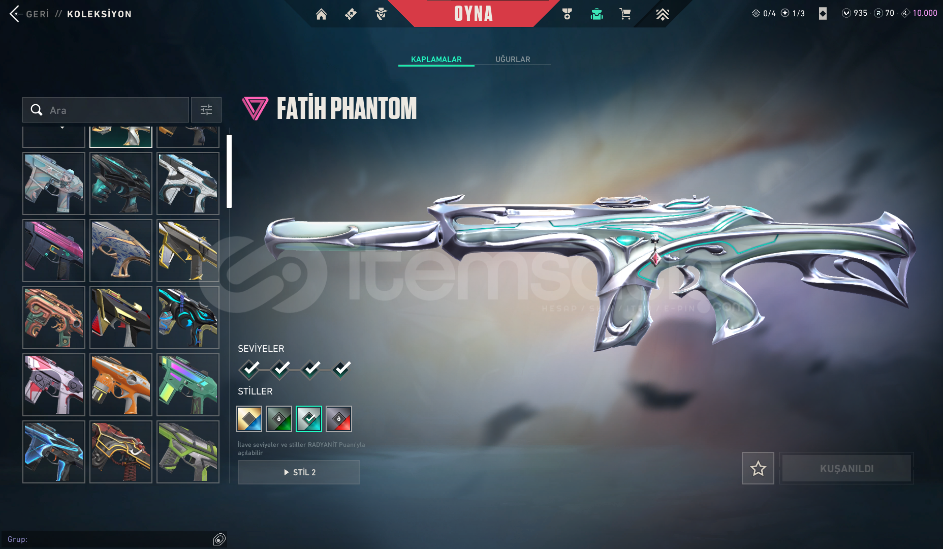 HESABI OYUN BAŞINDAN BERİ KULLANIYORUM HERHANGİ BİR HİLE KULLANIMI HİÇBİR ZAMAN OLMADI. İLK SAHİBİYİM ZATEN. HESAPTA TOPLAM 240 ADET SKİN BULUNMAKTADIR. YATIRDIĞIM PARANIN ÇOK ÇOK ALTINA BIRAKIYORUM ARTIK OYNAMADIĞIM İÇİN.VANDAL: ONİ, İYON, YAĞMACI, GAİA, KAOSUN BAŞLANGICI, ASİL, EJDER, IŞIK MUHAFIZI, RGX, YILDIZ BELASI, DELİPOP, CHAMPİONS ...