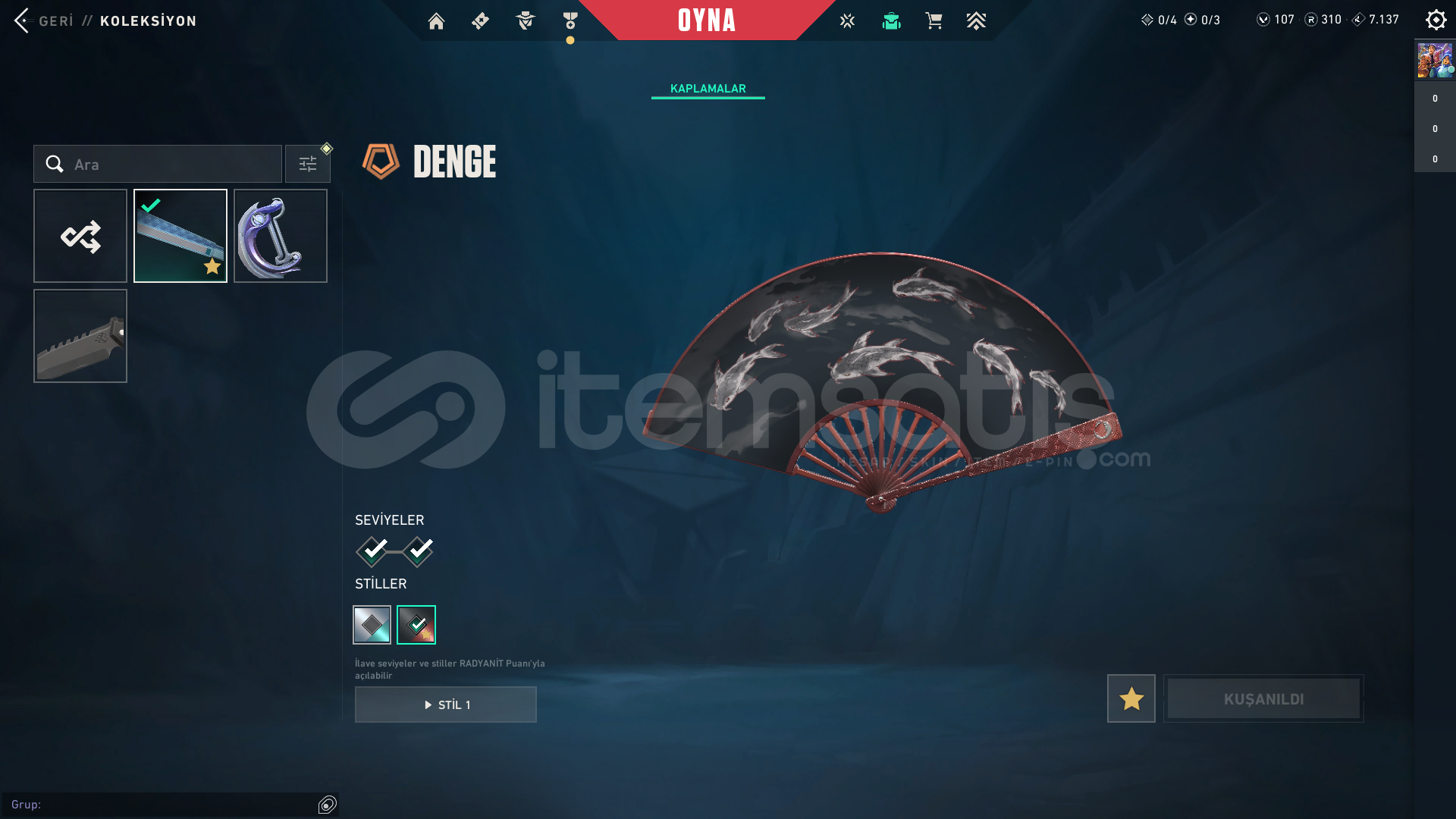 • hesapta 24 skin vardır