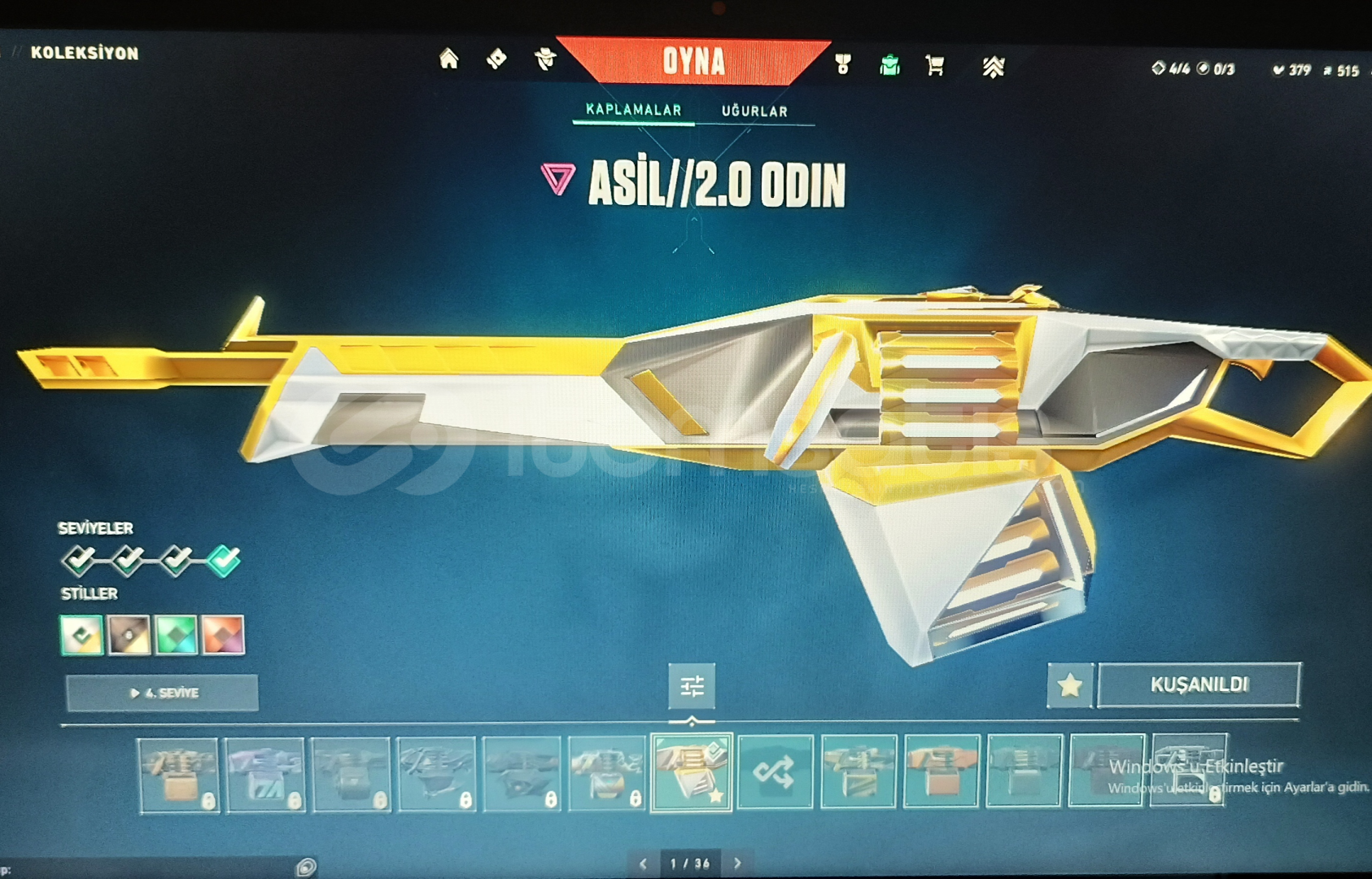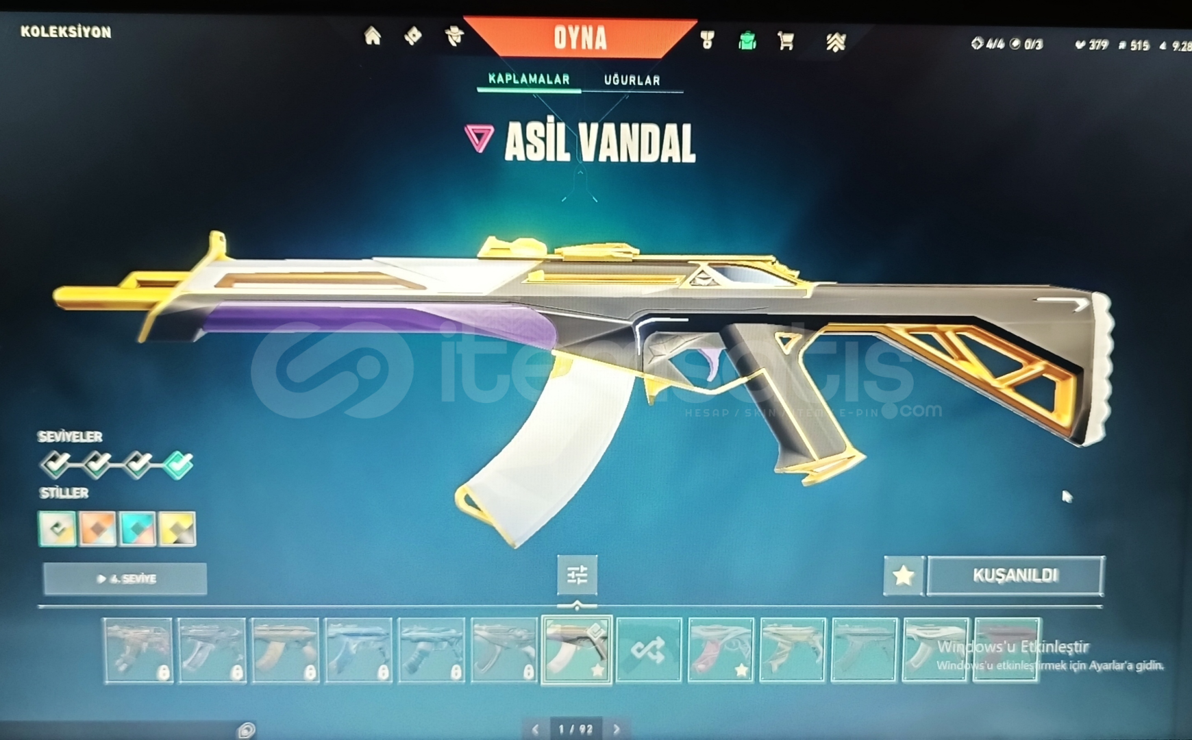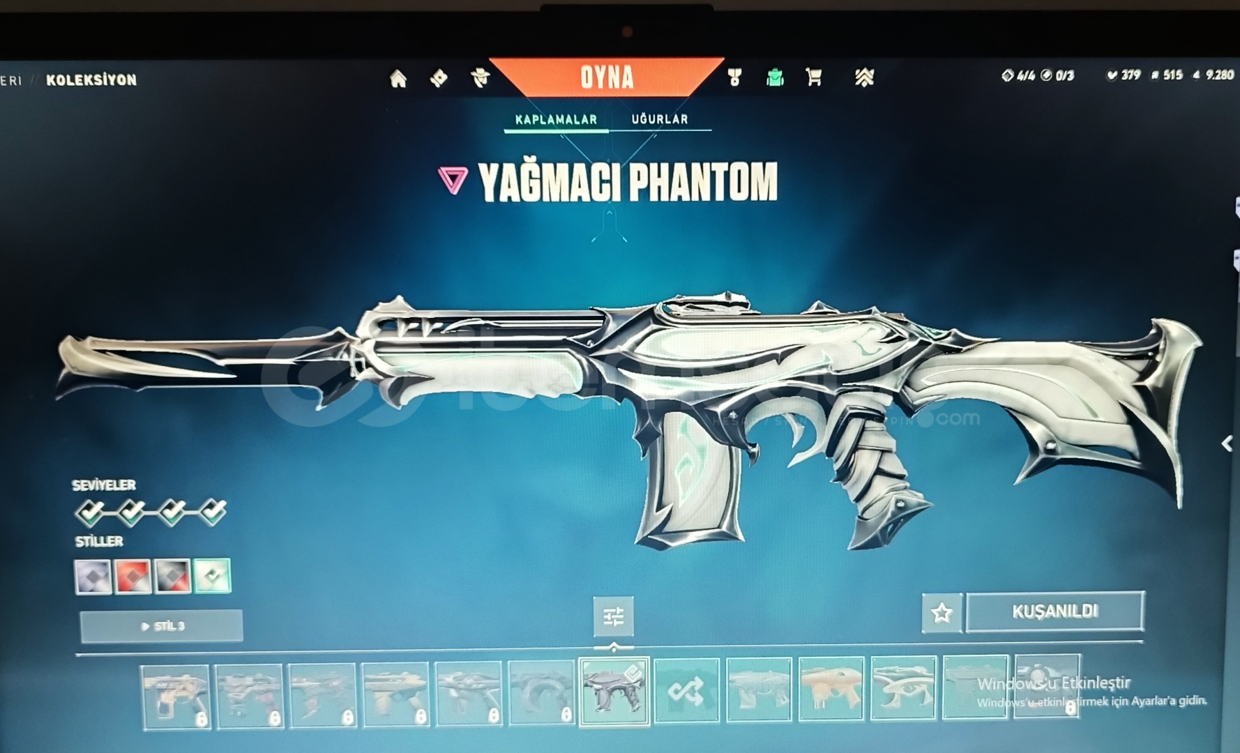 379 VP 515 radyanit vardır skinlerin çogunun renkleri açıktır Tr hesabı gümüş 2 dir hesap 264lvl