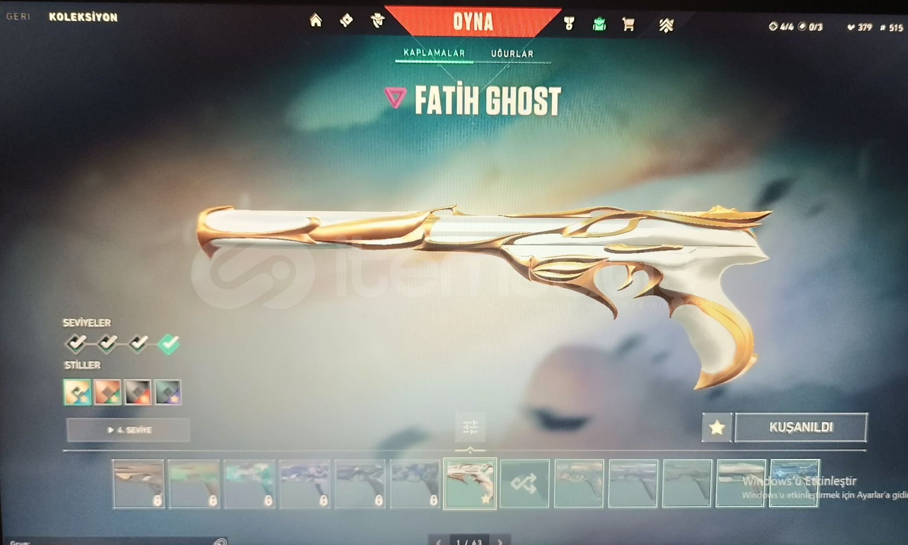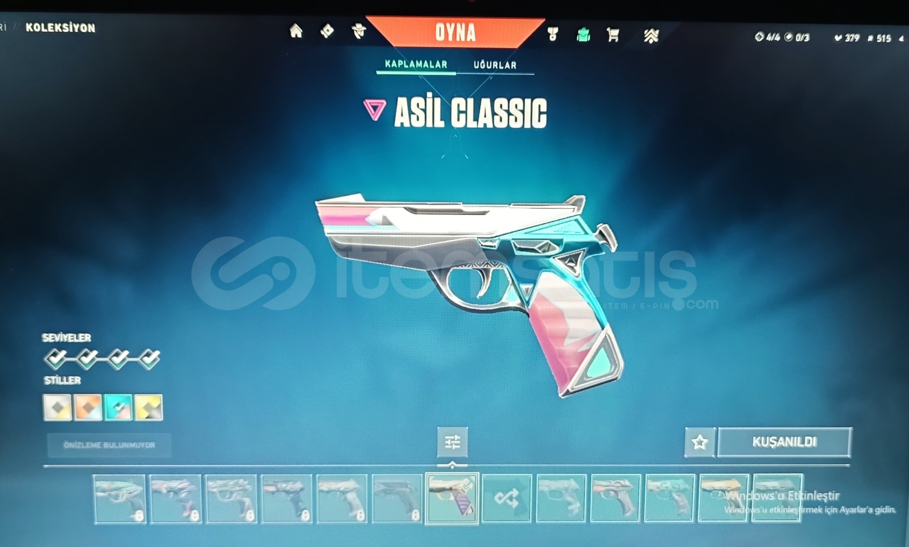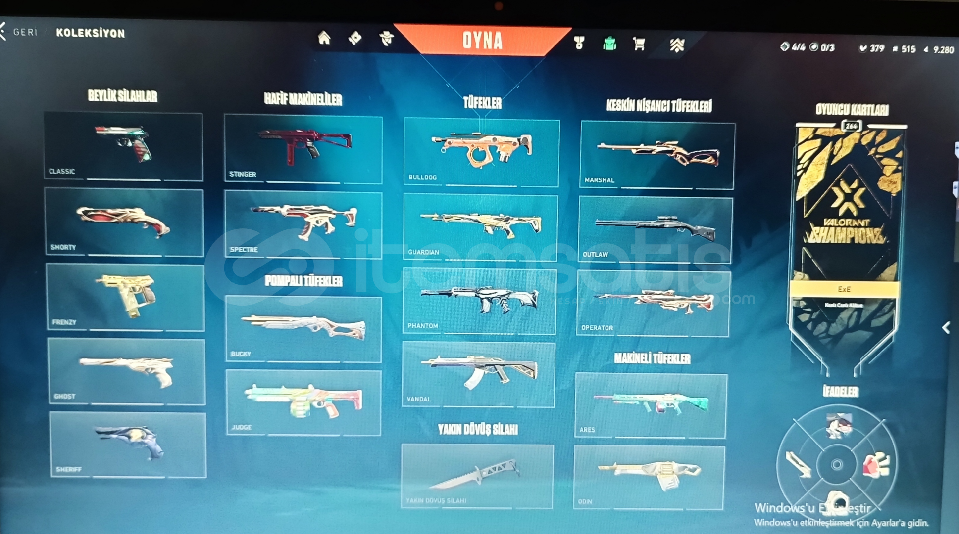 379 VP 515 radyanit vardır skinlerin çogunun renkleri açıktır Tr hesabı gümüş 2 dir hesap 264lvl