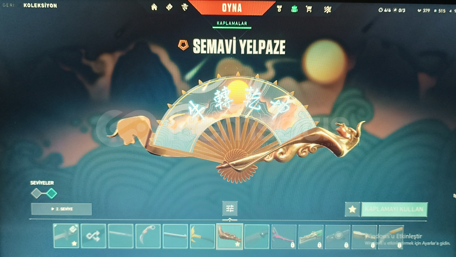 Hesap içeriği-Semavi Yelpaze-Uzayli Avcısı Bıçağı-Asil Vandal-Gaia Vandal-Yitik Vandal-yağmaci phantom-Asil classic-Yitik ghost-Asil Odin-Kaplan set(5100vp değerinde)-3 yada 4 tane battlepass varHesapta bütün ajanlar açıktır379 VP 515 radyanit vardır skinlerin çogunun renkleri açıktır Tr hesabı gümüş 2 dir hesap 264lvlHesabın ben 2. Sahibiyim yaklaşık 4...