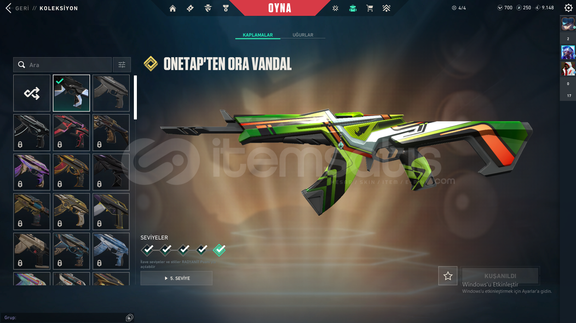 Hesapta bir kısıtlama ceza yoktur . Seri Tetik Seti ve [ONE TAP Yeni Vandal Vardır ] Skinlerin Hepsinin rengi açık ve yükseltilmiştir . Fiyat gayet Mağkuldür Oyunu Bıraktım İçin Satıyorum . Yeni bir set almaya kalkındınızda 2.500 tl yükseltmelerle 3000 TL yi geçmektedir Pazarlık Teklif Etmeyin Lütfen İsterseniz İlk e postasını Teslim Edeceğiz Alıcısına Hayırlı Olsun . Yeni Bir Set Almaya Kalkarsanız Hesabın Üzerinde Bütün Renkleri Açıp Fullüyecek şekilde Extra Metariel Mevcuttur .