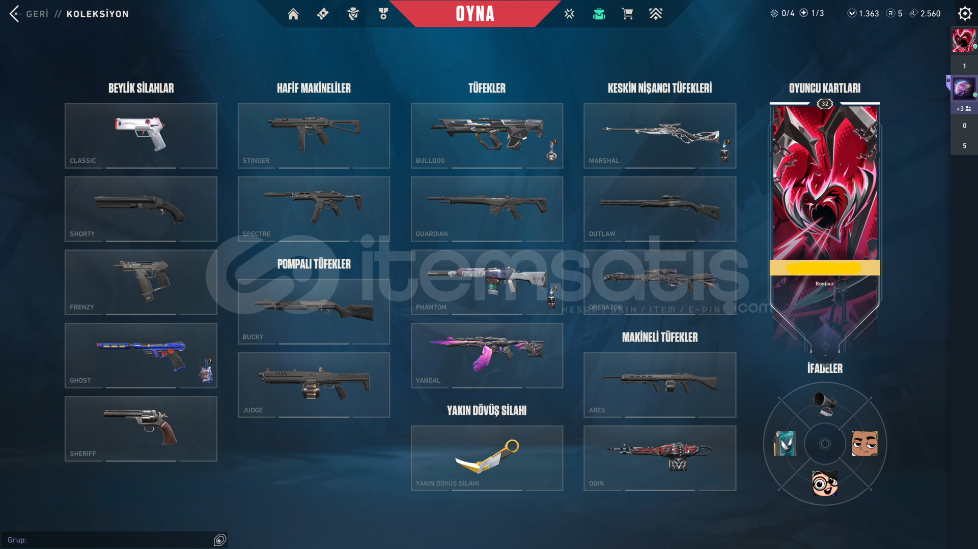 GÖRSELDE GÖZÜKEN SKİNLER MEVCUTTUR.EK OLARAK GEÇEN SEZON VE BU SEZON BATTLEPASS VARDIR.