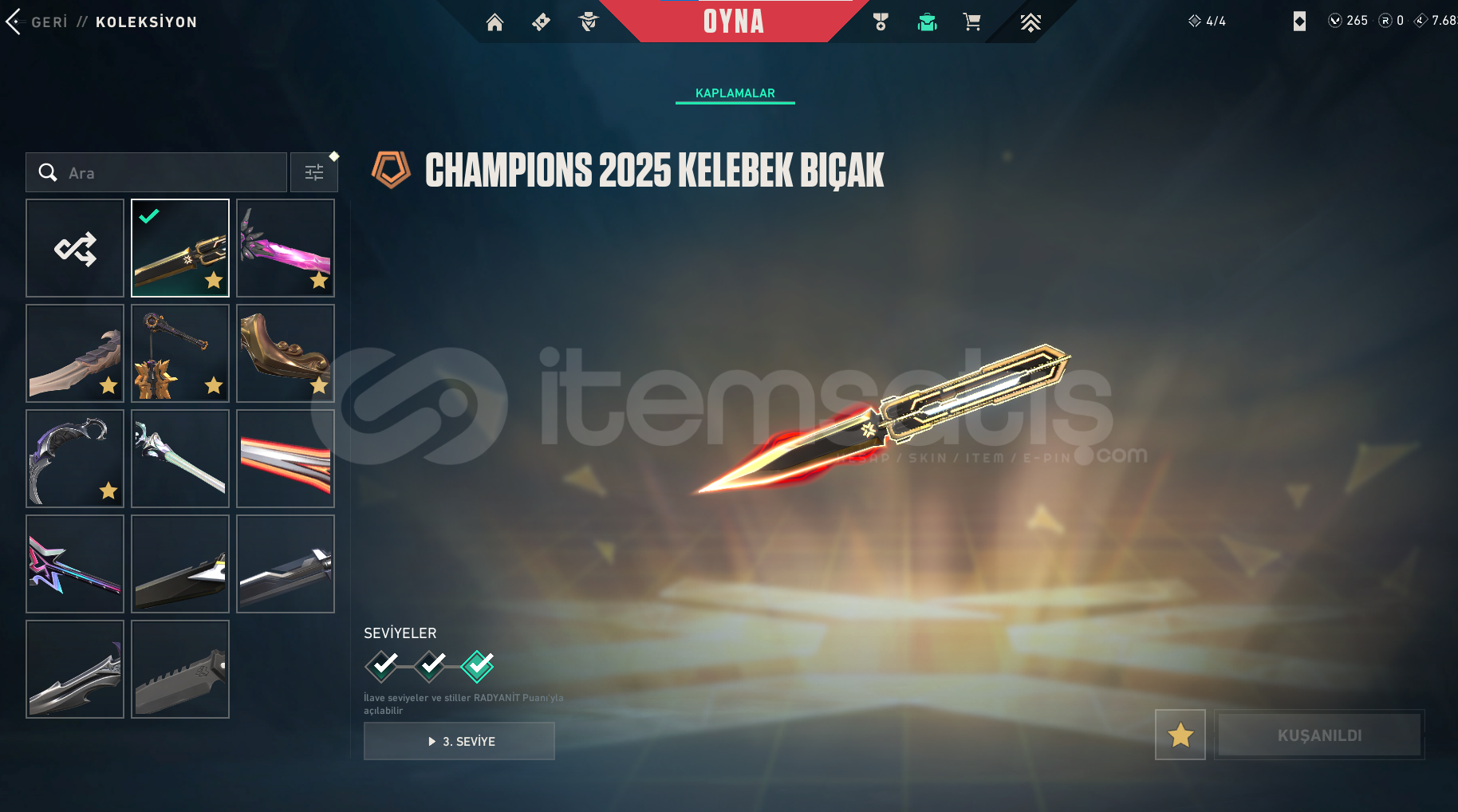 🔥 DOLU VALORANT HESABI – ZENGİN SKIN KOLEKSİYONU 🔥Hesap önceki sezon açılmış, tamamen tarafımca oynanmış ve dizilmiştir.Skin çeşitliliği yüksek, özellikle bıçak – Vandal – Phantom ağırlıklı dolu bir hesaptır.Hesap BilgileriSeviye: 71Önceki sezon rank: Gold 2Ceza / ban geçmişi: YokHesap durumu: Temiz, aktif🗡️ BI&...