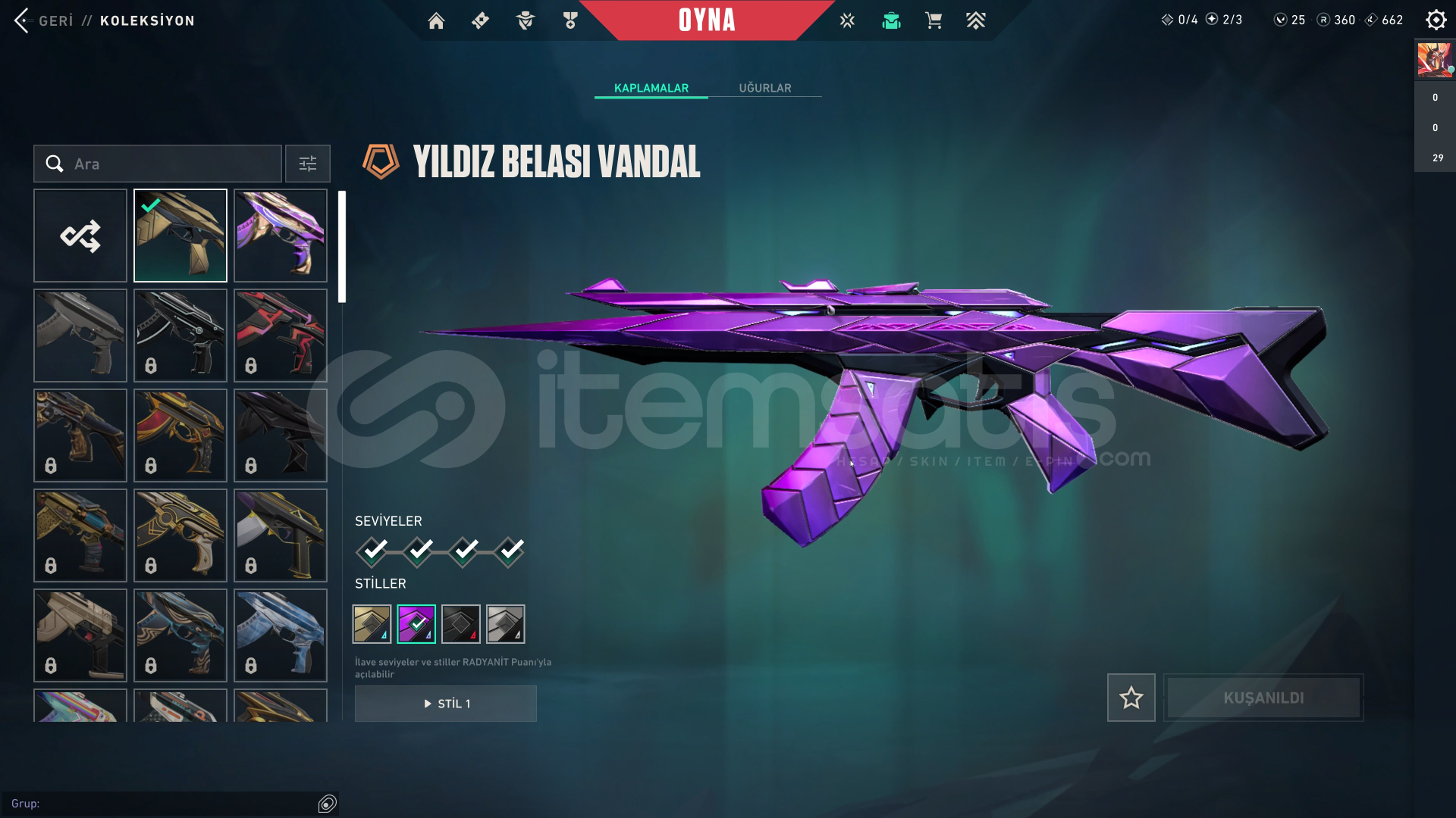 Valorant E-Postalı hesaptırYILDIZ BELASI VANDAL BULUNAN HESAPTIRRank: BRONZ 1Sunucu: TRMağaza: TRHesap maili ve bilgileri ile otomatik olarak teslim edileceğinden dilediğiniz zaman satın alabilirsiniz.Ürünler fotoğraftakiler ile bire bir aynı hesaptır, farklı hesap değildir