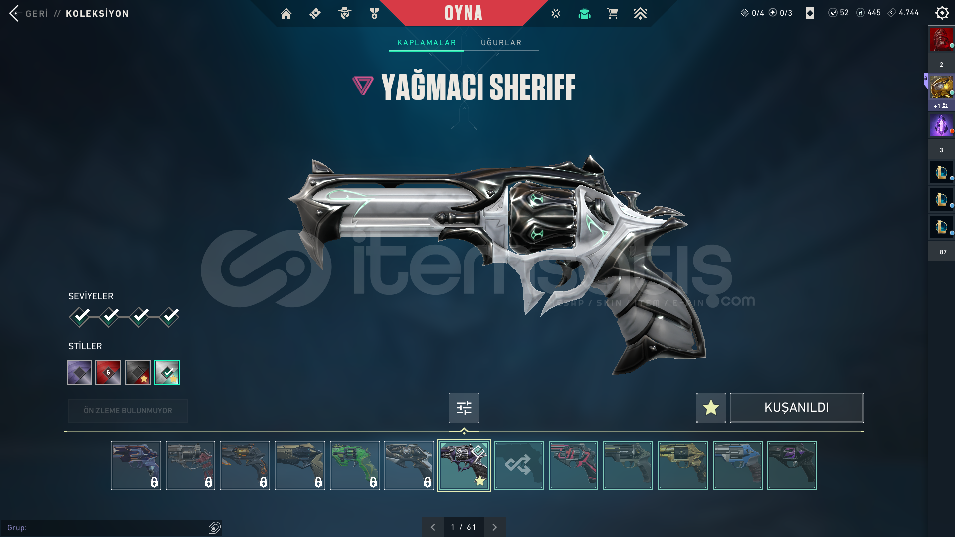 Outlaw silahı hariç bütün silahlarda skin mevcuttur.