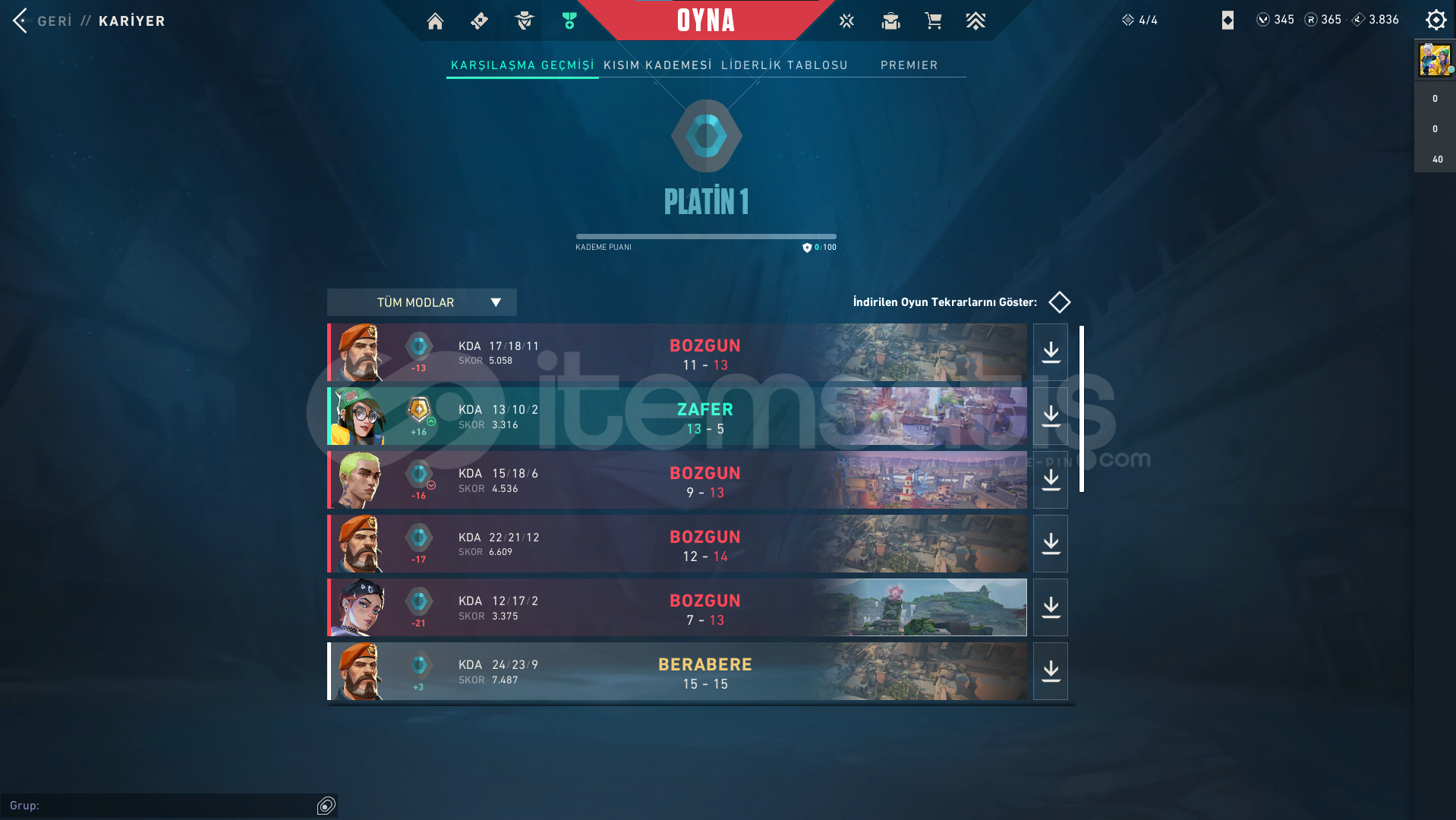 Hesabımın rankı Plat 1, 132 seviye main hesapGmail ile birlikte İlk maili ile teslim edilecekiçinde 345 vp vardır harbor hariç tüm karakterler açık hesap içinde Yitik Bıçak, Asil Vandal, Ulupençe Vandal ve Geçen Sezon Tamamlanmış Battlepass vardır.