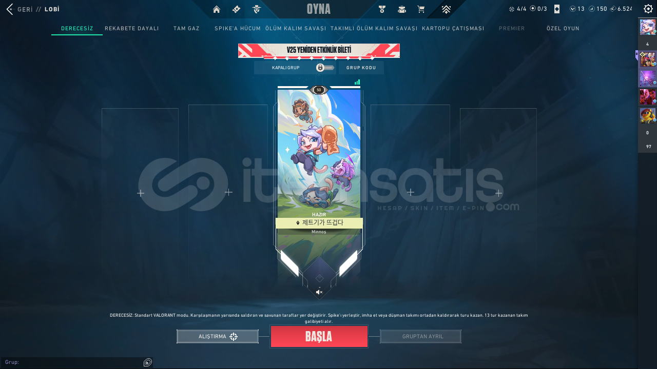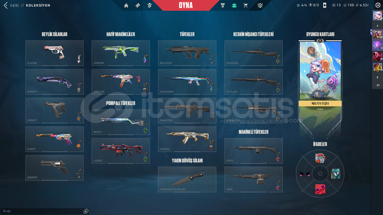 Sunucu TR50 SeviyeRank Demir 3Skinler:Işıkkıran ClassicPanoramik ClassicKıvrak Bela ShortyÖzgür Ruh GhostDevinim Stınger,Özgür Ruh SpectrePanoramik BuckyEcelin Isırığı JudgePanoramik GuardianYitik VandalDevinim Vandal7/24 Hizmet İstediğiniz Zaman Satın Alabilirsiniz.