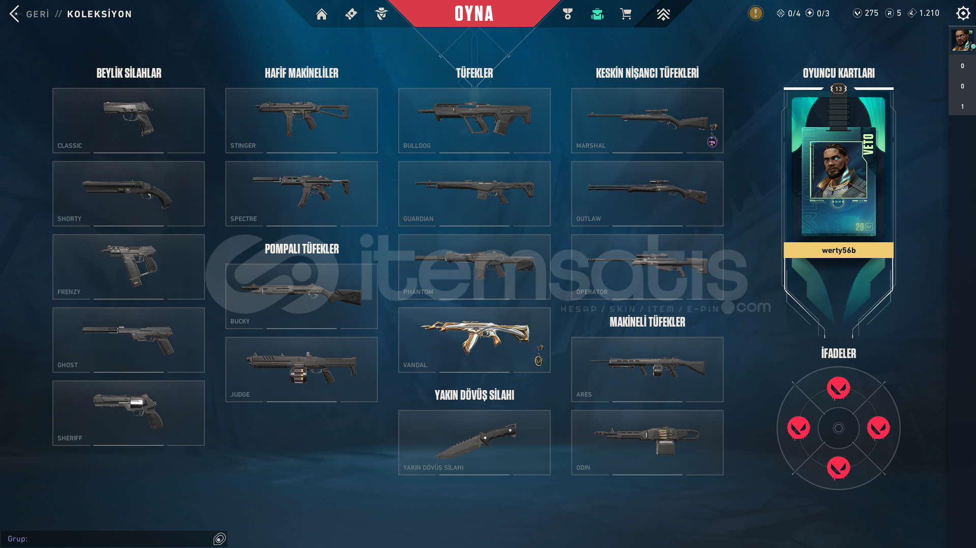 Valorant skinli E-Postalı hesaptırYİTİK VANDAL BULUNAN HESAPTIR.Rank: DERECESİZSunucu: TRMağaza: EUMailli hesaptır bilgileri size devredilmektedir, mevcut bilgileri kendi bilgileriniz ile değiştirebilirsiniz.Ürünler fotoğraftakiler ile bire bir aynı hesaptır, farklı hesap değildir