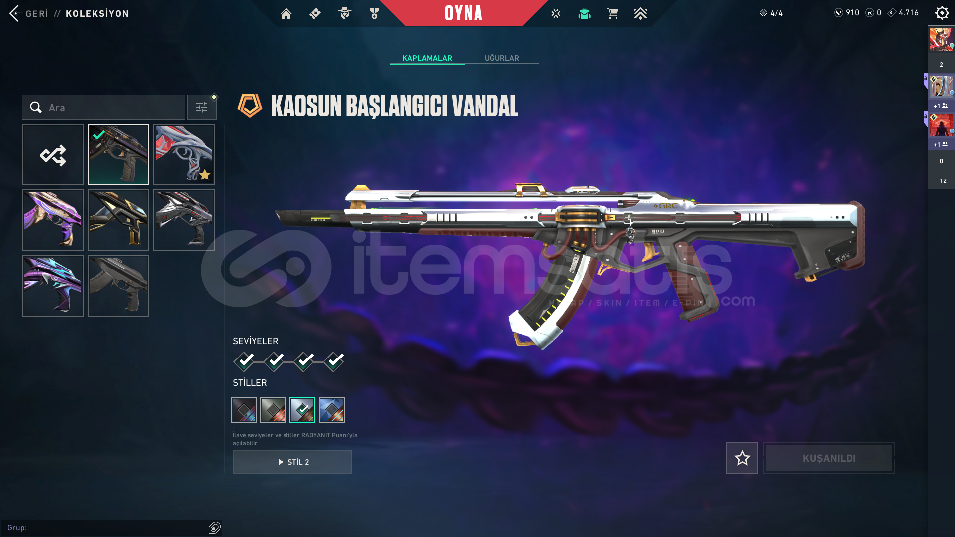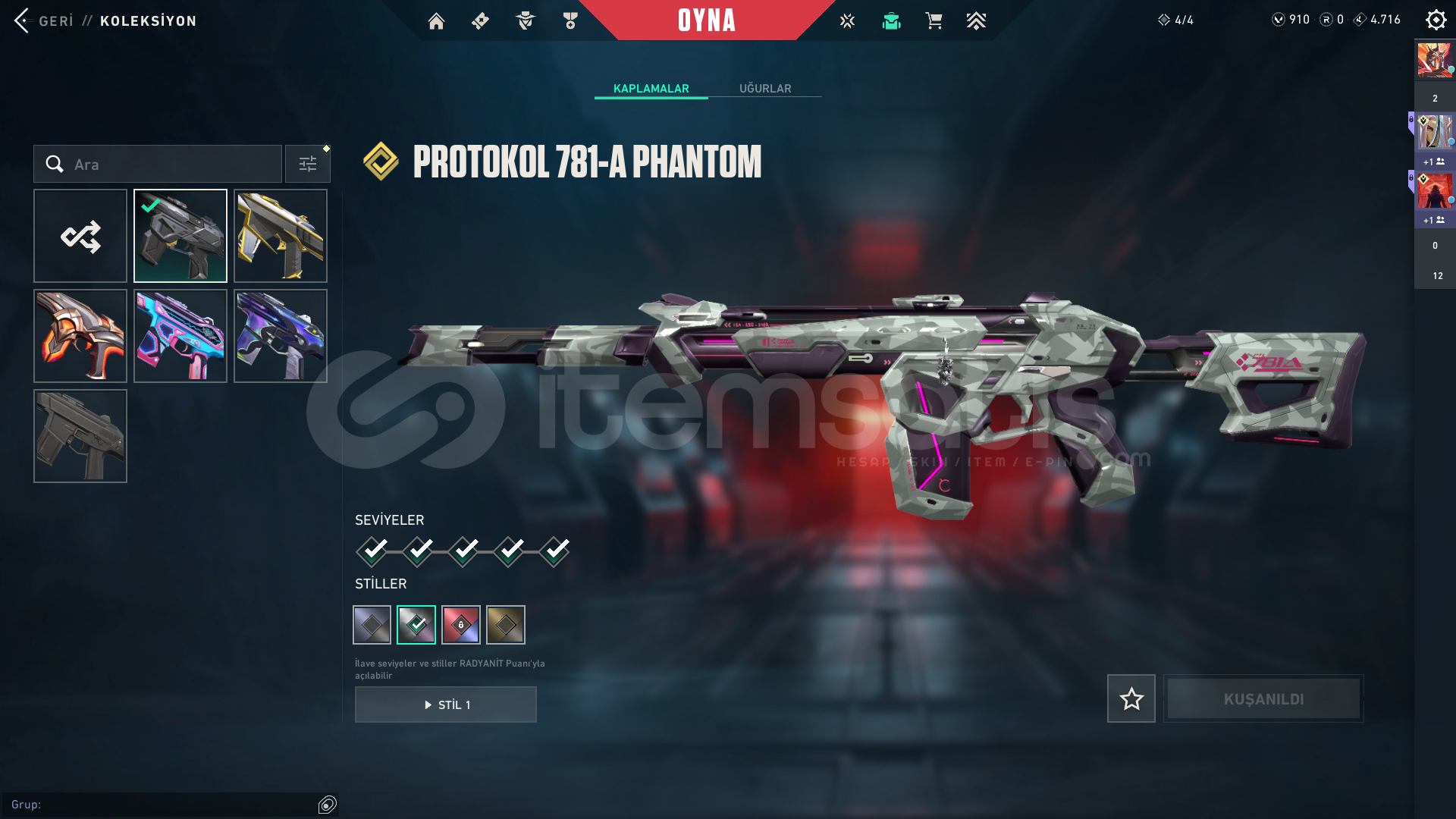 Hesapta bolca skin vardır. Mainlik hesap. Alana hayırlı olsun. 900vp içerisinde mevcuttur. Herhangi bir banı yoktur.