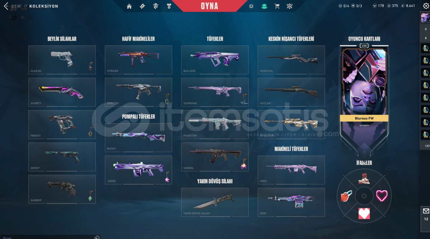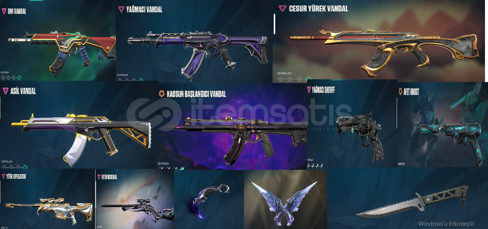 Hesap 235 SeviyeElmas 2 DirYüce 1 Gördü Oni VandalYağmacı VandalCesur Yürek Vandal Asil VandalKaosun Başlangıcı Vandal Yağmacı SheriifAfet Ghost Yitik Operatör Fatih Marshal Yağmacı KarambitYadigar Taşı Hançerleri Uzaylı Avcısı Bıçağı İlk Sahibi Benim Herhangi Bir Sorun Yaşamazsınız Mail Değişim Yapılacak.