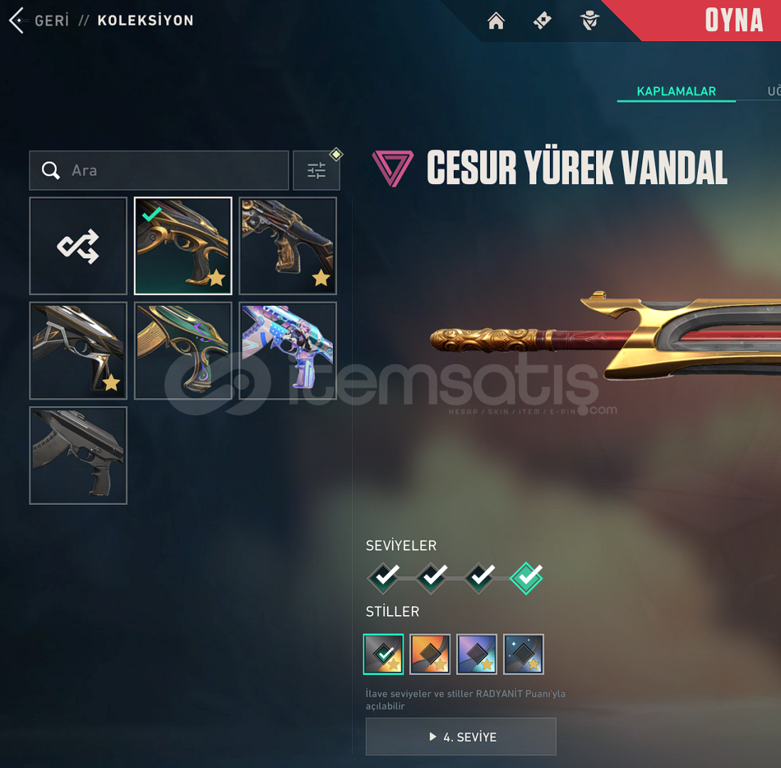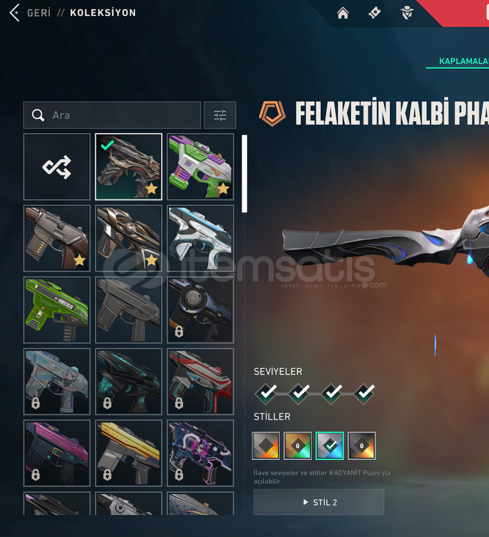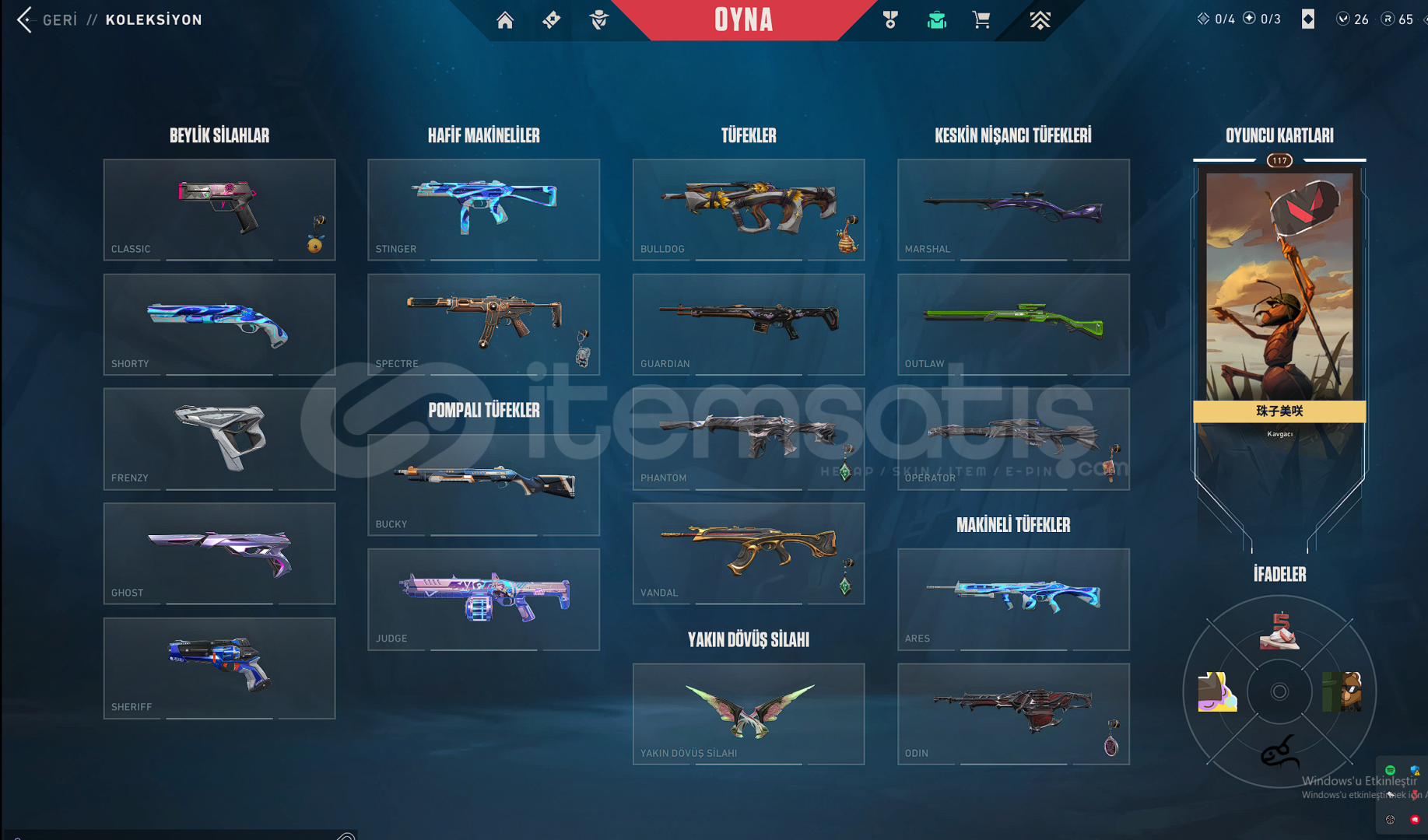 6 adet 3550vp üzeri bıçak skini fotoğraflarda net mevcuttur 4 phantom 3 vandal 2 spectre ejder op yağmacı odin shorty hariç bütün tabancalar ve zifiri bulldog skini bulunmaktadır temiz hesaptır yeni hesap kasmak istediğimden dolayı satılıdır satın alacak arkadaşa kişisel bilgilerimi vereceğim bir sıkıntı yaşaması karşısında veya güven duyabilmesi adına sürekli iletişimde kalabiliriz
