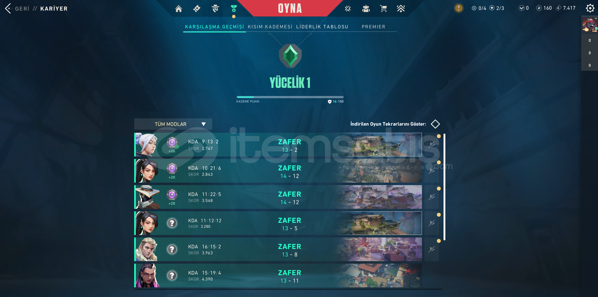 ⭐ VENÜS COMMUNİTY ⭐Hesabımız her gün ve her teslimattan önce kontrol edilmekle birlikte kesinlikle temiz ve problemsizdir.Hesabımızın kuruluştan itibaren bütün maçları tarafımızca oynanmaktadır.Hesabımızın rankı Yücelik 1 dir.Hesabımız 30 Leveldir.Hesabımızın sunucusu ve mağazası TR dir rahatlıkla oynayabili...