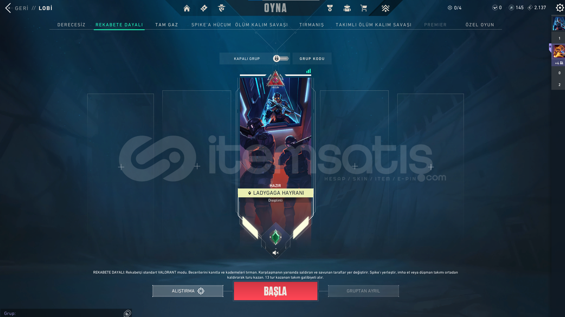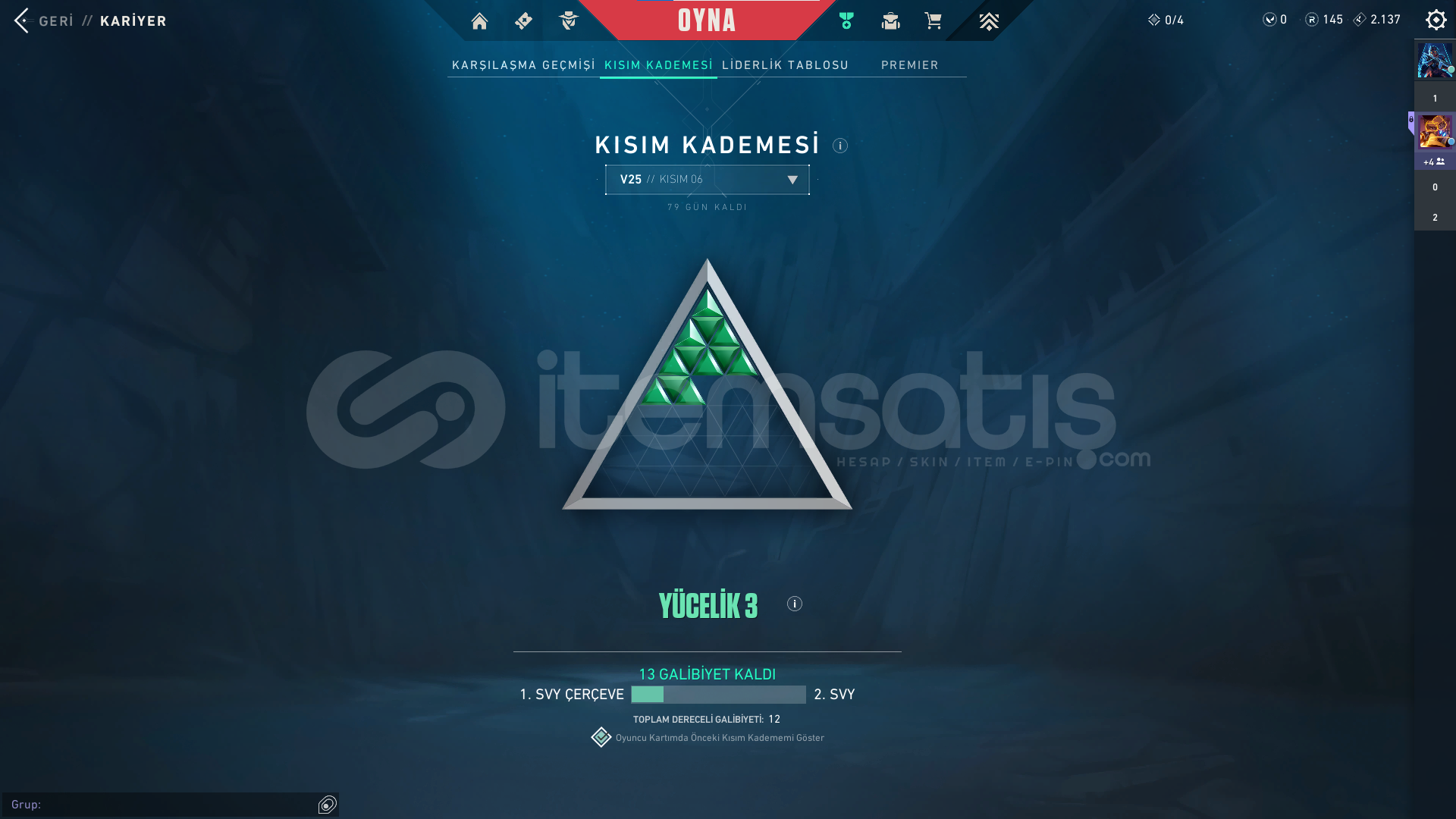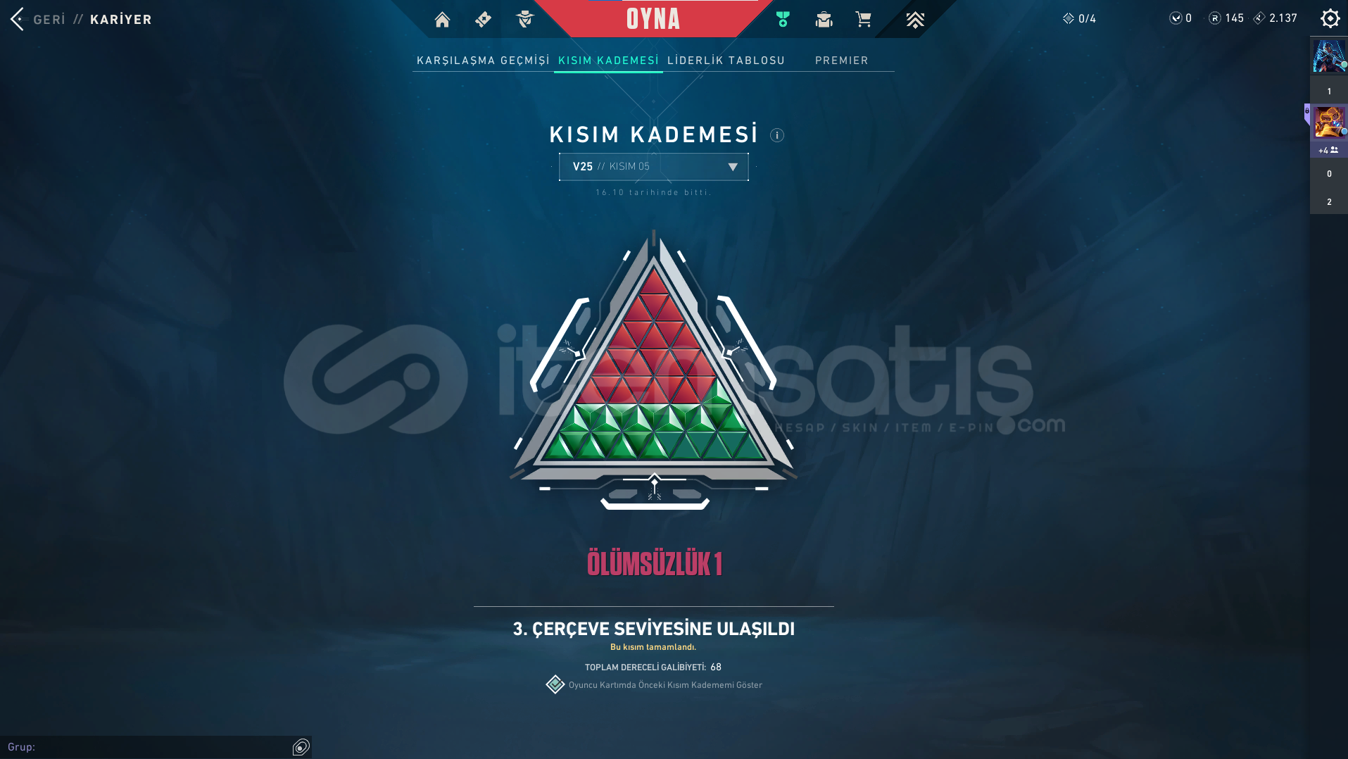 KAAN SHOP GÜVENCESİYLEHesap' da skin yoktur Aktif Rankı Yücelik 2 dir V25 5. Kısım'da İmmortal 1 93rr görmüştür.Bu sezon yücelik 3 gördü şuan yücelik 2 dir.Alan arkadaş sadece oyun girecekAlana hayırlısı olsun.