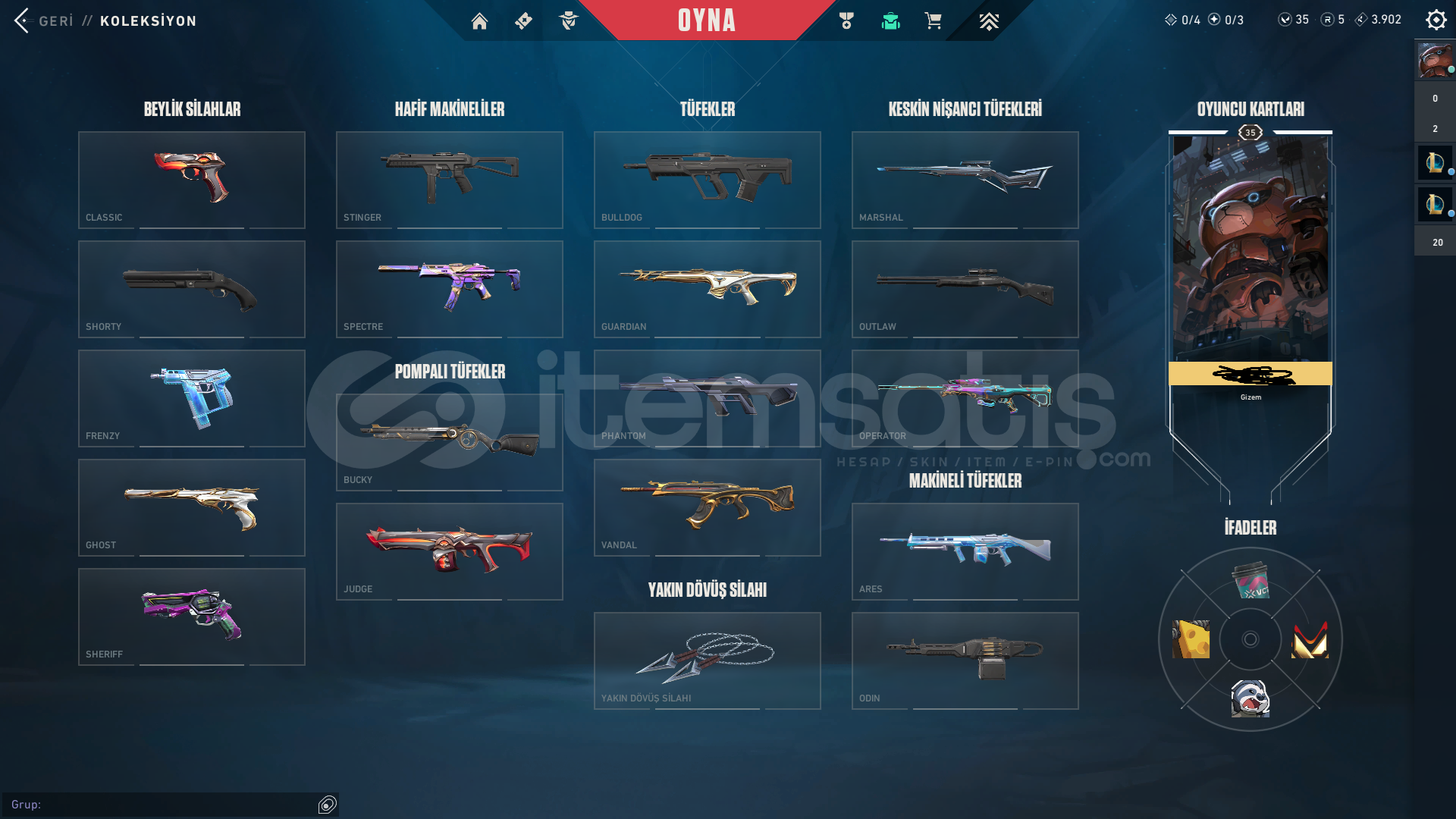 Hesabın ilk ve tek sahibiyim alıcı arkadaşa hayırlı olsunRank Yücelik2 50KpGhost: Özel hareket ghost ve Fatih GhostŞerif: Ponçik Ecel ŞerifBucky: Köken Bucky Guardian: Fatih GuardianPhantom: Şimşek PhantomVandal: Champions 2025 Vandal ve Cesur Yürek VandalMarshall: Kuronami MarshallOperatör: Delipop OperatörBıçak: Kuronami Bıçak ve Champions 2025 Kelebek BıçakVe Bp skinleri