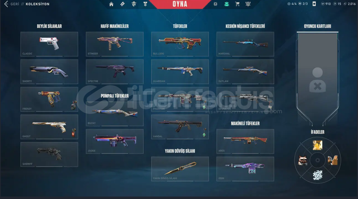 Vandal: Ejder ateşi , kaos , yağmacı ,champ2025, köken, oni , zamanın ötesiphantom: protokol , afet , onisherif: yağmacı , anomalispectre : exoghost: fatihclassic : spectrumop: yağmacıbıçak: champ2025 kelebek, oniplat 1 hesaptır yücelik uğurluklarına sahiptir