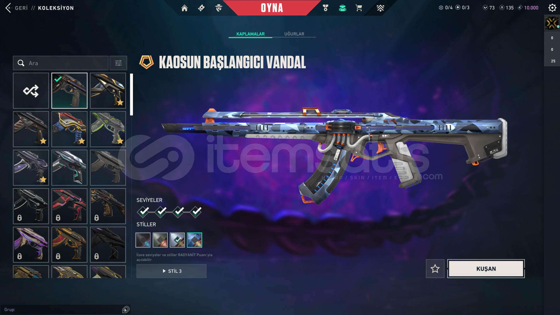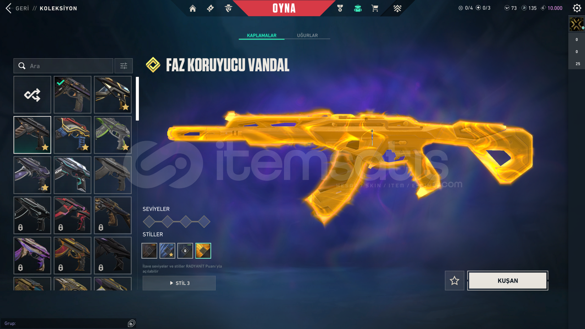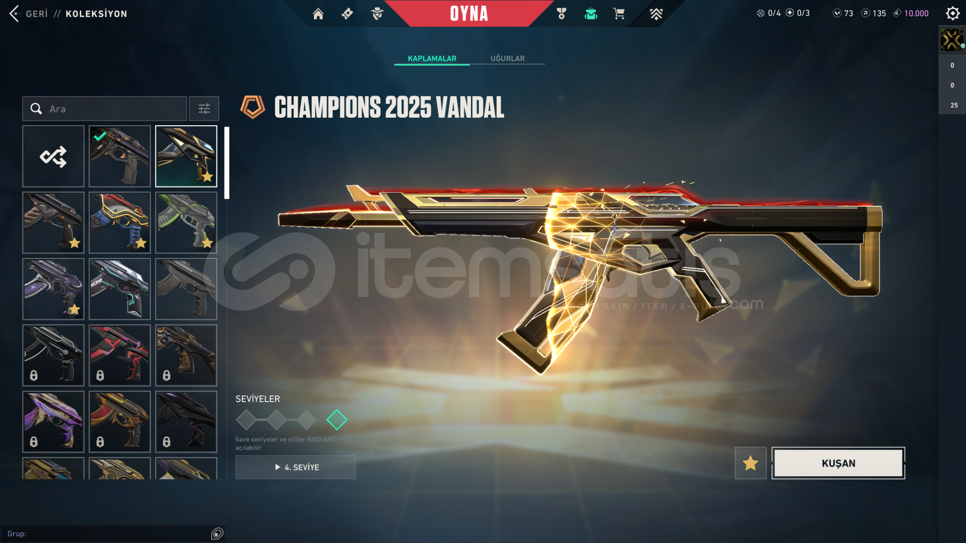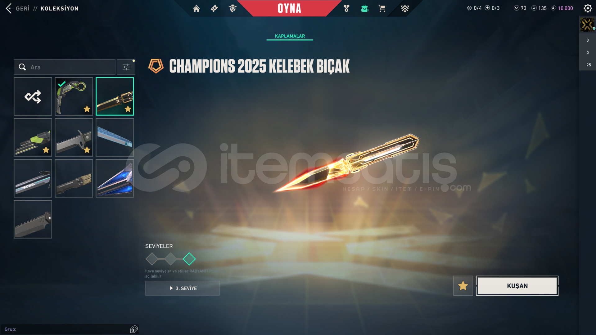 Radyanit puanı: 135vp puanı:73rank:yücelikHESAP SEVİYE:380kingdom puanı:10000SKİNLER (BATTLE PASS AÇIK)-BIÇAKUZAYLI AVCISICHAMPİONS 2025DENGEHIZ TUTKUNUÖZEL HAREKATSOLAREX YADİGARIRGX KILIÇRGX KELEBEK-VANDALFAZ KORUYUCUCHAMPİONS 2025KAOSUN BAŞLANGICIONİRGXYAĞMACI(1 ADET BP SKİNİ)-PHANTOMAFETONİ(3 ADET BP SKİNİ)-DİĞERONİ SHORTY (5 ADET BP SKİNİ)CLASSİC&...