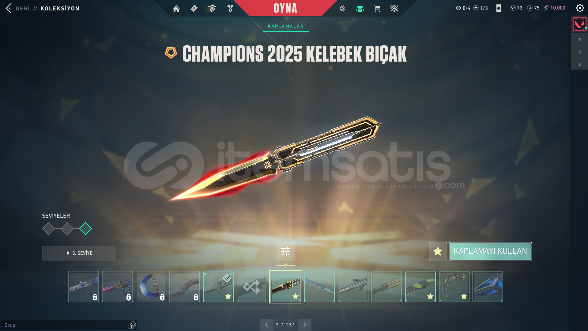SKİNLER (BATTLE PASS AÇIK) -BIÇAKUZAYLI AVCISICHAMPİONS 2025DENGEHIZ TUTKUNUÖZEL HAREKATSOLAREX YADİGARIRGX KILIÇRGX KELEBEK -VANDALFAZ KORUYUCUCHAMPİONS 2025KAOSUN BAŞLANGICIONİRGXYAĞMACI(1 ADET BP SKİNİ) -PHANTOMAFETONİ(3 ADET BP SKİNİ) -DİĞERONİ SHORTY (5 ADET BP SKİNİ)CLASSİC (5 ADET BP SKİNİ)FRENZY (7 ADET BP SKİNİ)GHOST FAZ KORUYUCU, ULUPENÇE (10 AD...