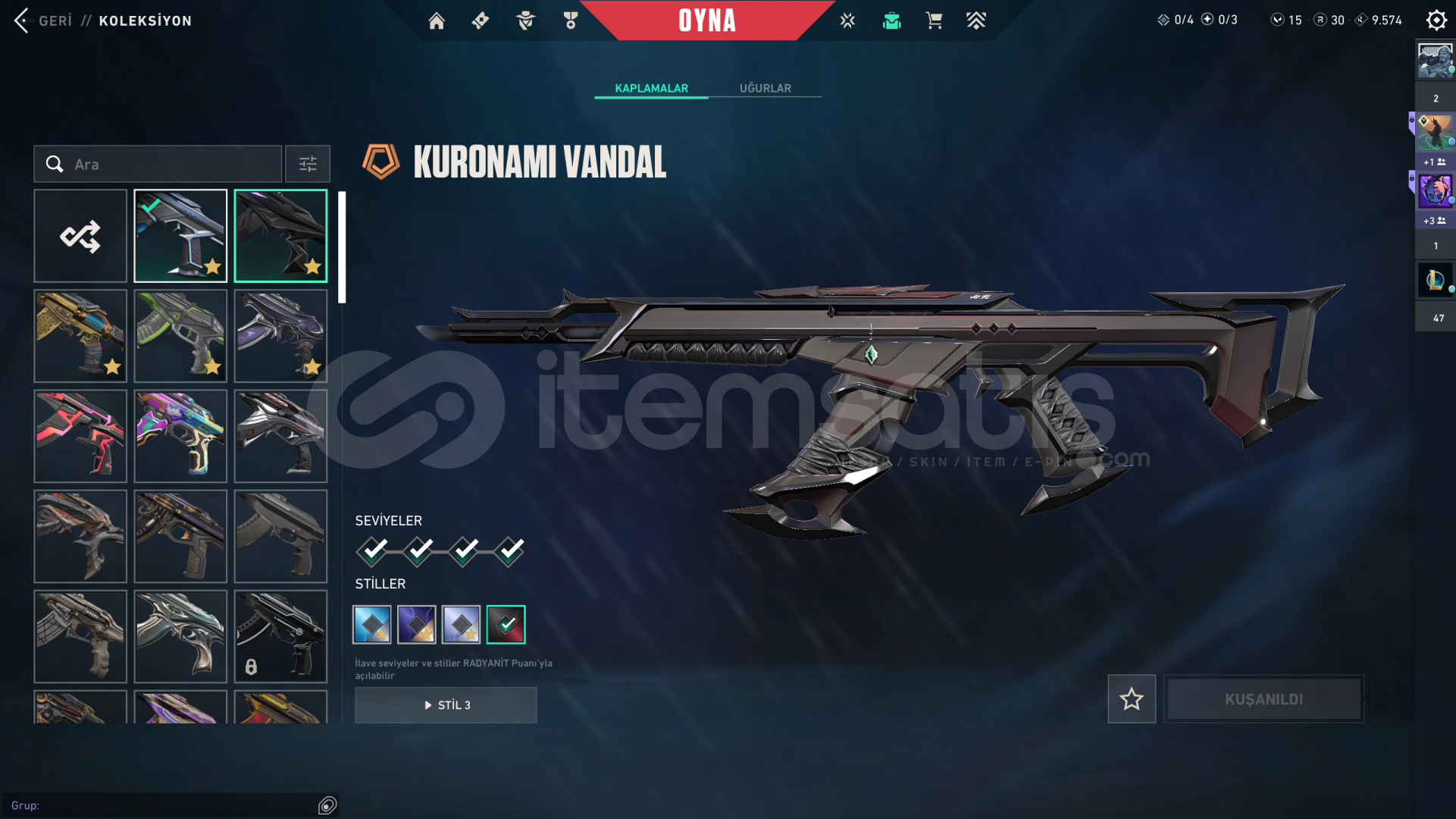 Kuronami Vandal • Anomali Vandal • RGX Vandal • Yağmacı (Reaver) Vandal • Delipop Vandal • Kaosun Başlangıcı Vandal • Fatih Vandal • Felaketin Kalbi Vandal