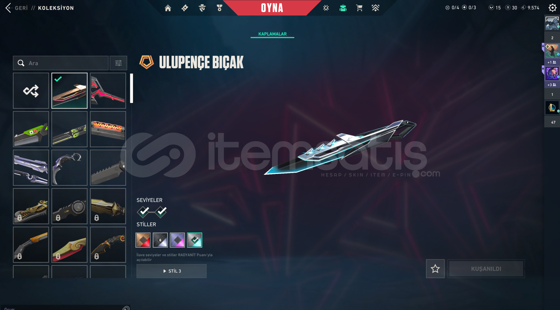 Premium bıçak çeşitliliği hesap değerini ciddi şekilde artırmaktadır.