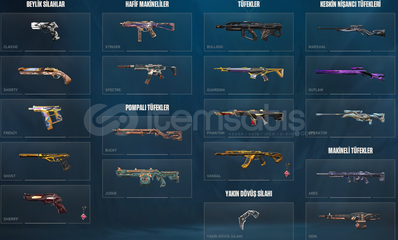 WANDAL - Kaos - Zamanın Ötesi - Yağmacı - Oni - Karaborsa - Faz - Gaıa - Ebedi - Delipop - Asil - AemondorPHONTOM - Champıons 2022 - İyon - DelipopGHOST - Faz - YağmacıSHERIFF - AnomaliBIÇAKLAR - VCT Karambit - Asil - EXO - Faz - VCT Merhamet - Yağmacı - Obsidiyen - Uzay Geçidi - KıvrımDİP FİYAT YAZMAKTAYIZ SATIN ALIN HEMEN TESLİM !