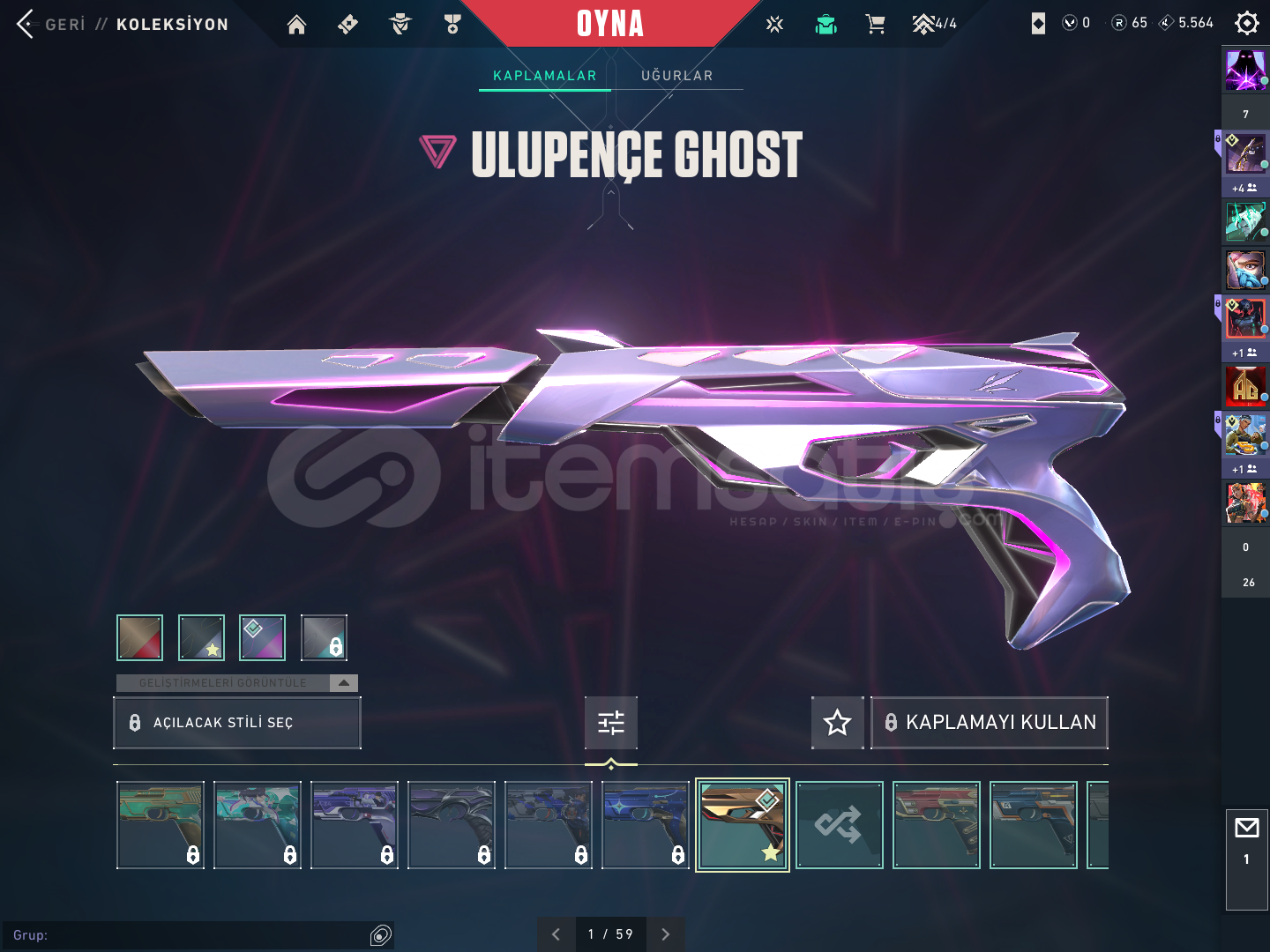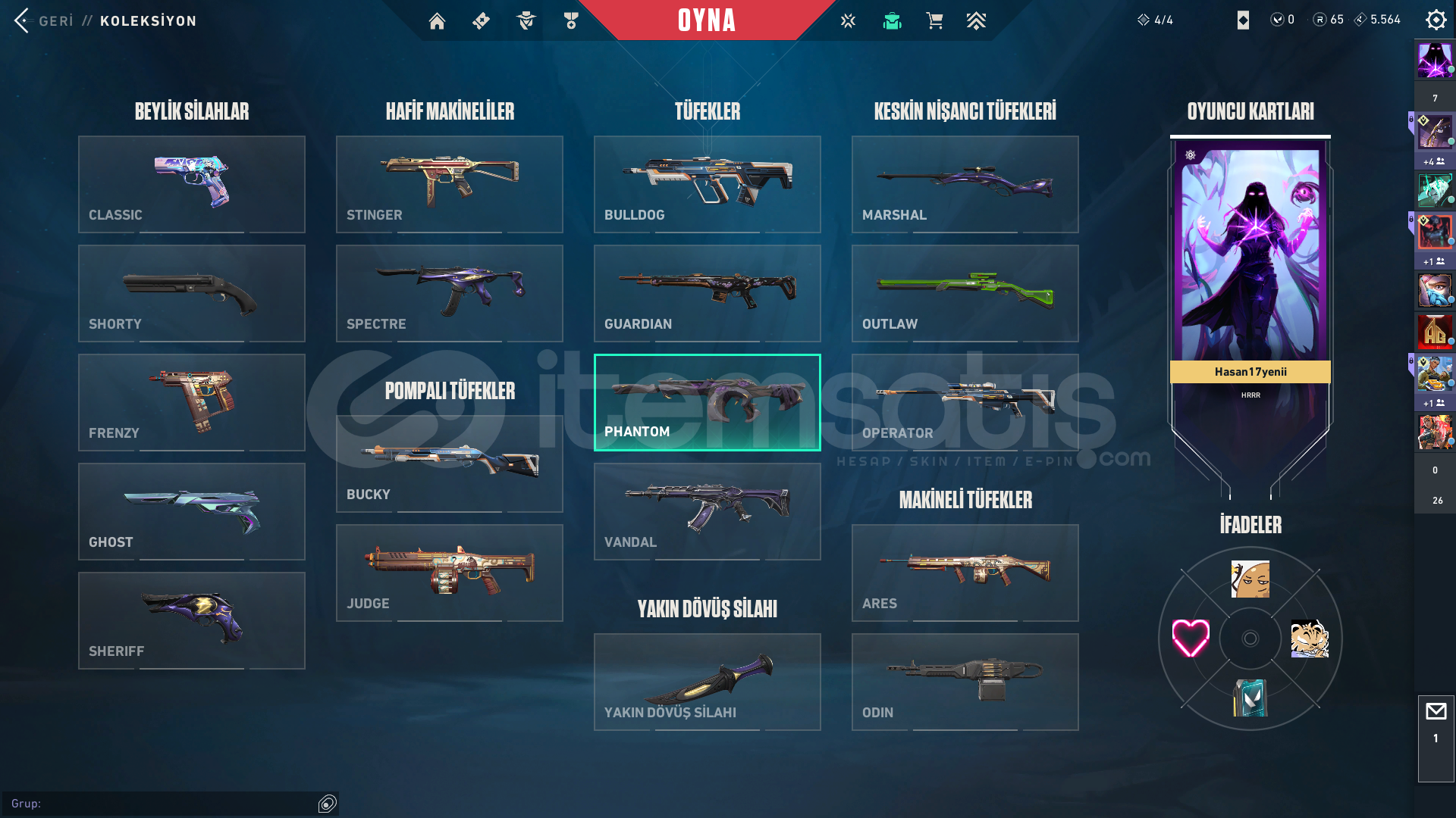Satın Alınan SkinlerVandal:Cesur YürekVandal:YağmacıVandal:Ejder AteşiVandal:OniPhantom:ZifiriPhantom:İyonPhantom:Radyant Krizi 001Ghost:Ulupençe2 Adet Savaş Bileti Alınmıştır Hesabı Gayet Uyguna Verdiğimi Düşünüyorum Pazarlık Payı vardır Acil ihtiyaç'dan Dolayı Satıyorum Alıcak Olan Kişi İmmo Yüce 3 Arası Oynuyacaktır Sümörf Bi ...