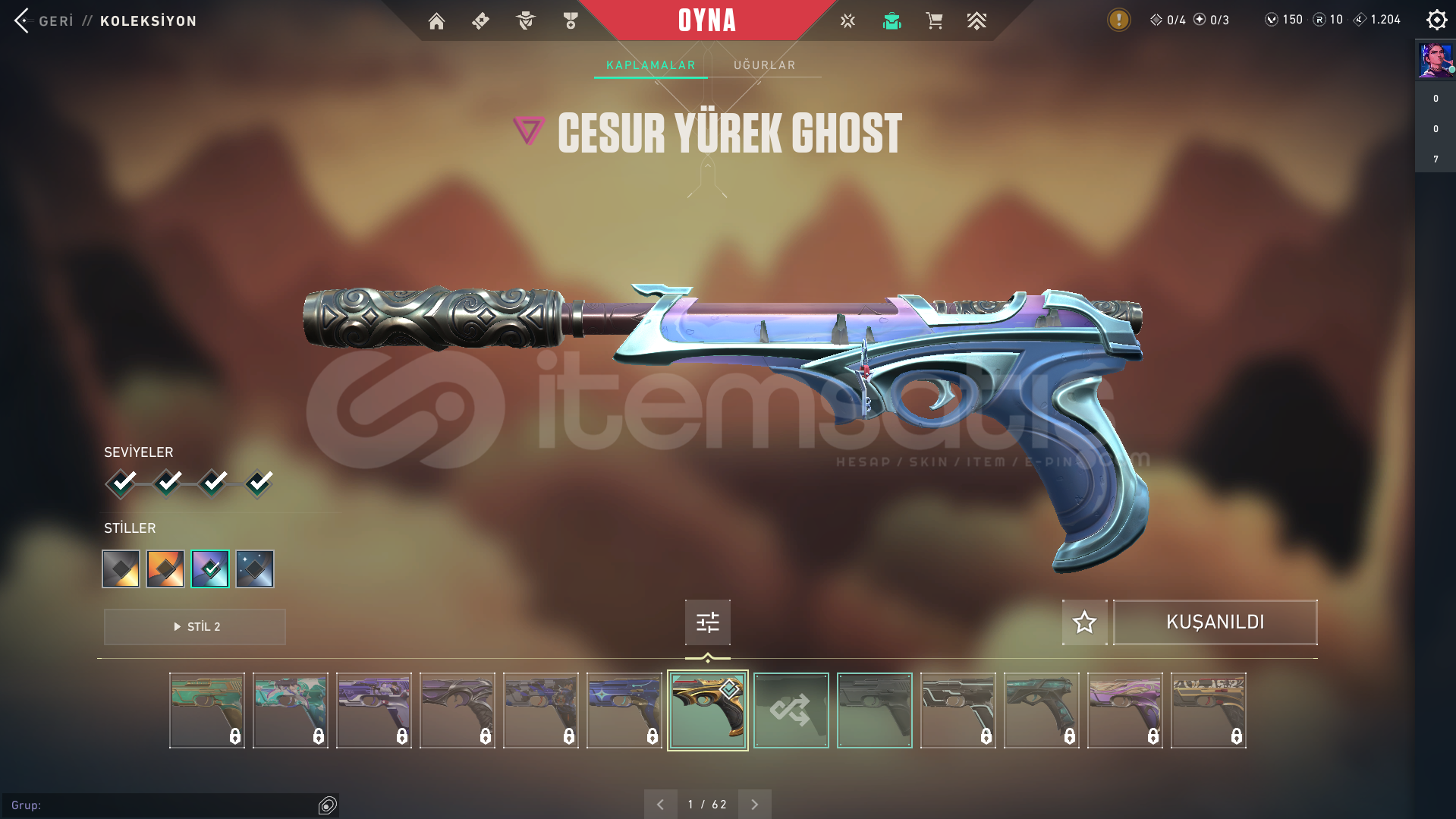 Valorant skinli E-Postalı hesaptırZAMANIN ÖTESİ VANDAL CESURYÜREK GHOST BULUNAN HESAPTIR.Rank: DERECESİZSunucu: TRMağaza: EUMailli hesaptır bilgileri size devredilmektedir, mevcut bilgileri kendi bilgileriniz ile değiştirebilirsiniz.Ürünler fotoğraftakiler ile bire bir aynı hesaptır, farklı hesap değildir