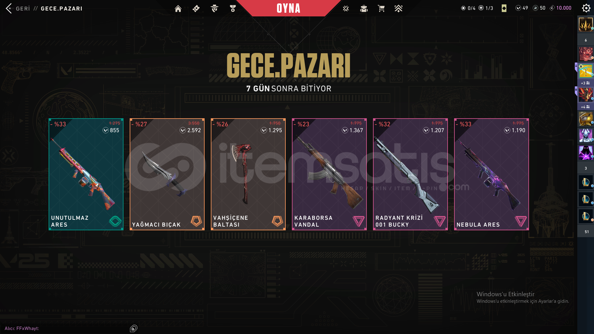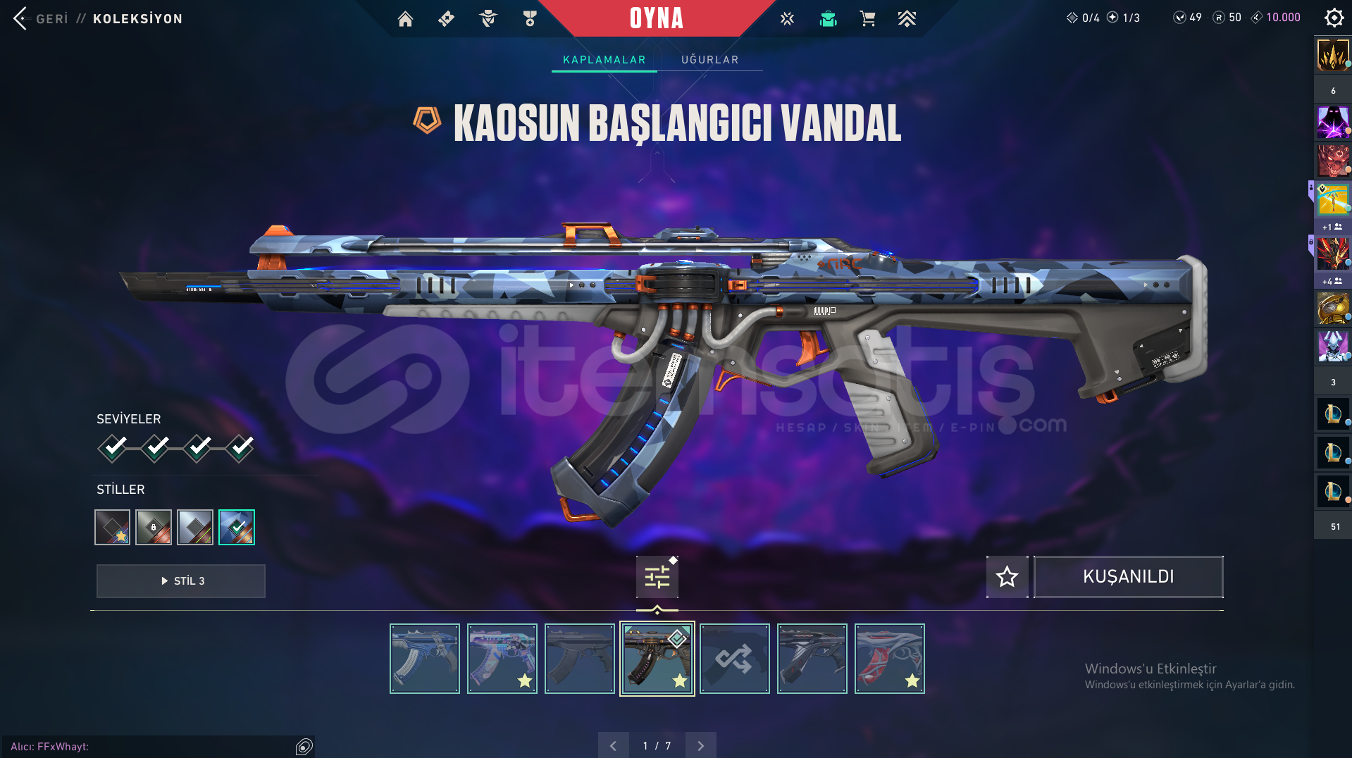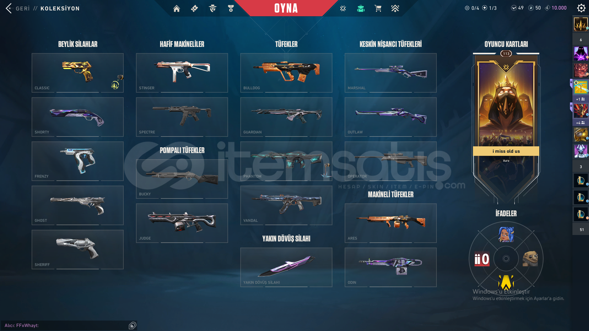 KAOS VANDALGAİA VANDALULU PENÇE BICAİYON ŞERİFFATİH GHOSTFATİH GUARDİANBBL CLASSICAFET PHANTOMSTİNGER BULLDOG MARSHAL OUTLAW ARES ODİN SHORTY FRENZİ JUDGE BUNLAR SAVAŞ BİLETİNDEN ALINANLAR50 RADYANİT49 VP10.000 KINGDOM KREDİSİİLK MAİL ERİŞİMİ YOK