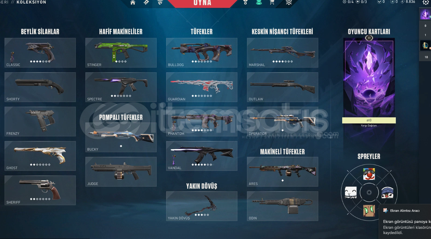 KRONAMİ VANDALZifir seti Anomali 2.0 Seti ve Anomali SetZifir seti Anomali 2.0 Seti ve Anomali phantom sheriff ve spectreEkstra olarak : Fatih Ghost,Seri Tetik Sheriff, Guardian,Gaia Guardian ve kronami vandal mevcuttur. Dia Hesaptır,