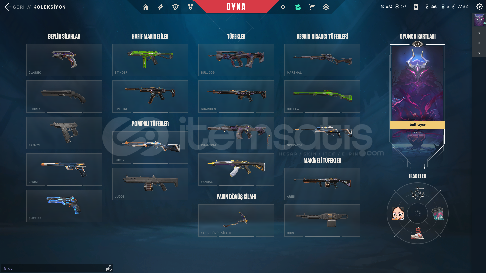 Zifiri Set(Zifiri Classic, Zifiri Marshal ,Zifiri Bulldog, Zifiri Phantom ,Zifiri Tırpan)Asil VandalAnomali Vandal1 Sezon Battlepas Açılmıştır Kimlik Onaylı Satıcıdan Sorunsuz hesap