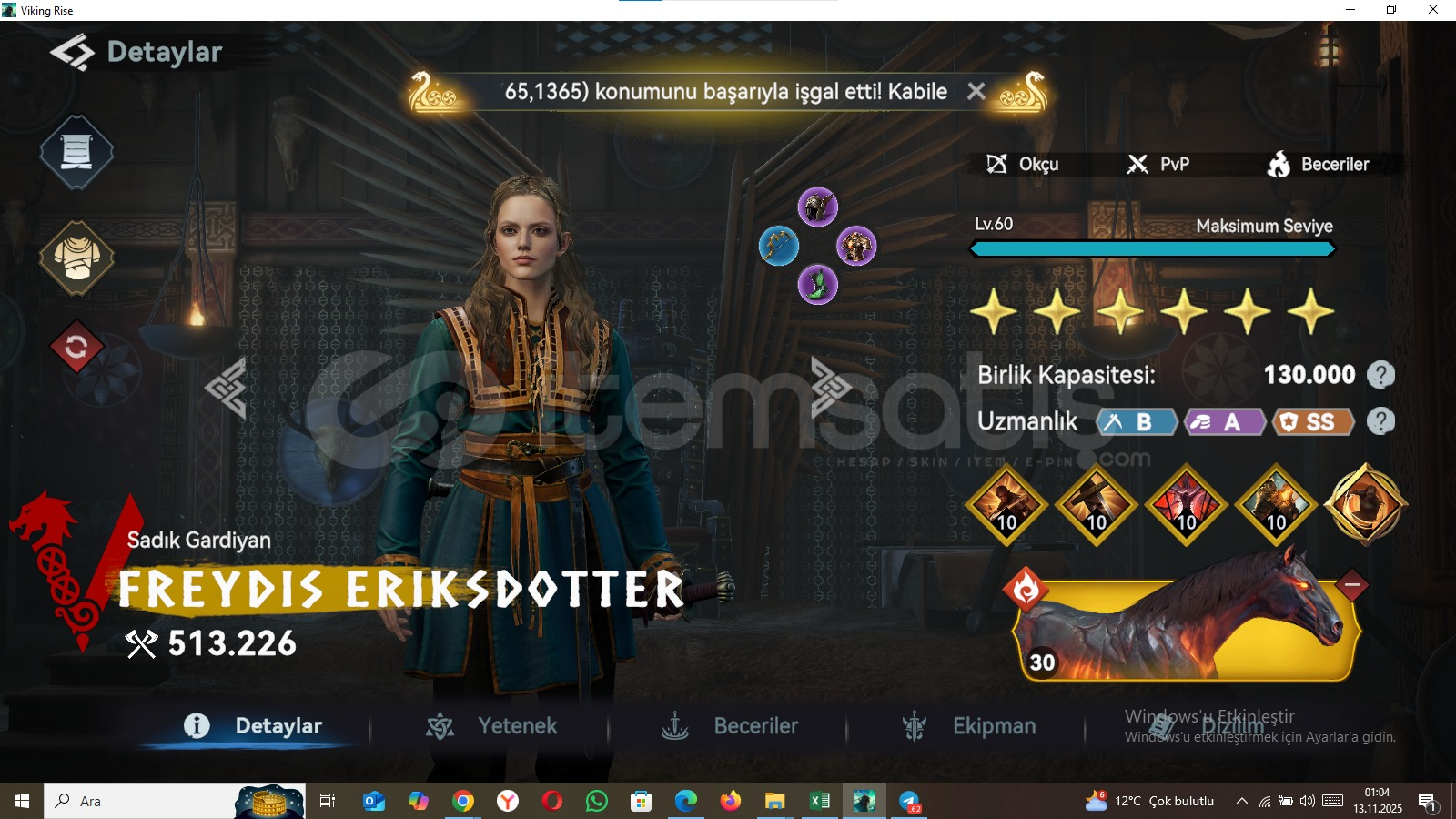 floki helgar gunnar larid harold gregory freydis artur ivana aethelflaed kahramanlar uyandırılmıştır. T7 askerler. En uygun beceriler fullendi. Floki ve helgar toplam savaşçı kudreti 1715. Kudret : 115,900,000 öldürme puanı: 817,000,000 işçiler 3 yıldız. Çok yakında göç zamanı başlayacak.