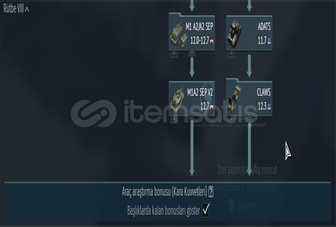ÖLÜCÜLERE CEVAP VERMEYECEĞİMHer şey resimde gözüktüğü gibi. Sadece Japon ve Çin ağacı tier 3 ve 4e kadar araştırılı onları koyma gereği duymadım resim koyma sınırı var. Amerika full zaten. 1 tane de gaijin parasıyla alınan araç var.Güven sorunu yaşayana ekran paylaşımı yaparım.MAİL ADRESİ İLE BERABER VERİCEM