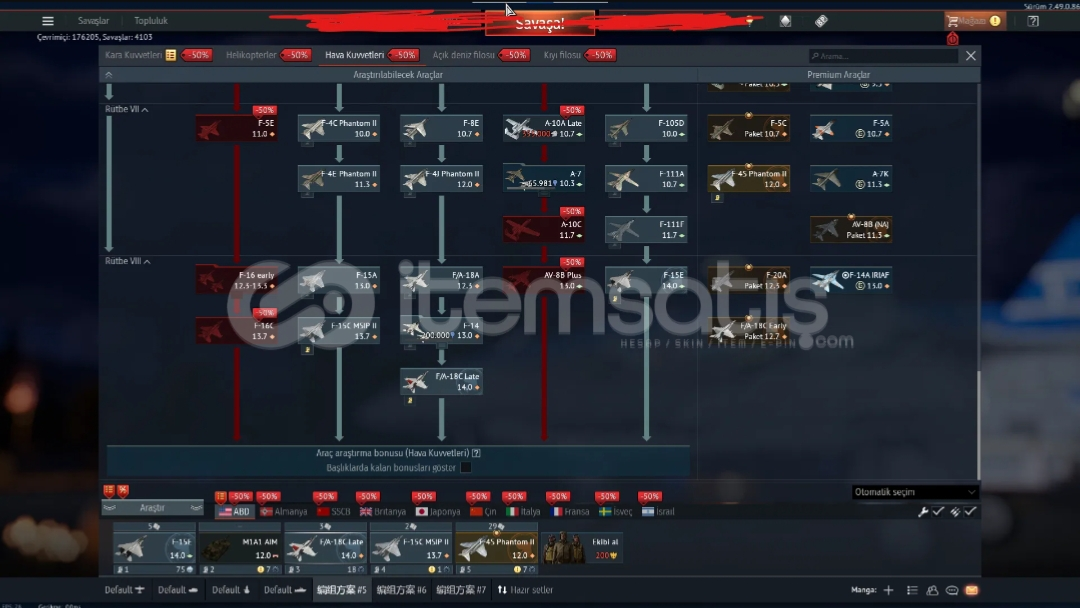 Resimde göründüğü gibidirPaylaşımlı Hesaptır2 hafta garantilidirYeni gelen uçakların yarısı kasılmıştırM1A1 premium tank vardır