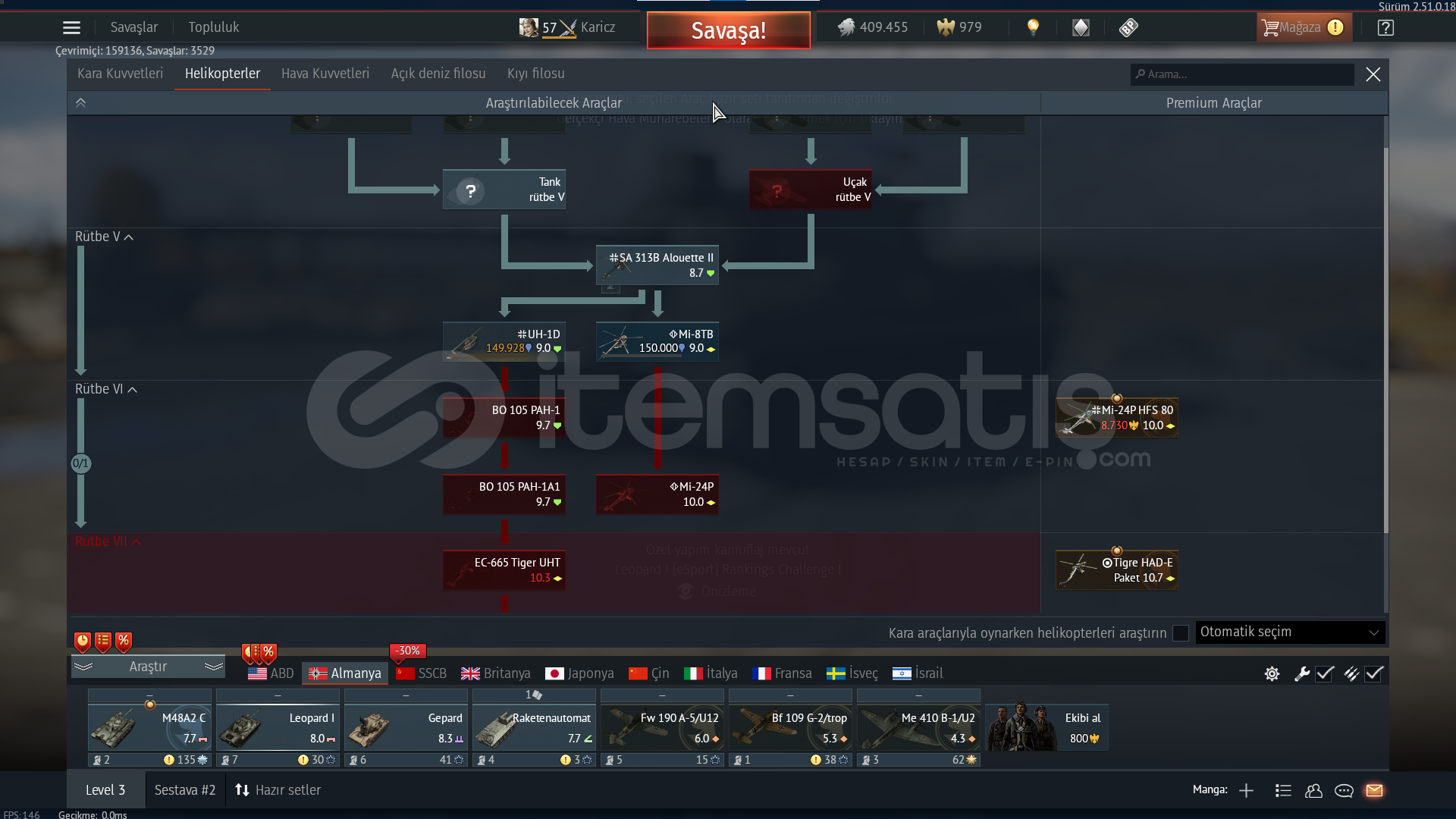 ALMAN TANK VE UÇAKLAR AÇIKTIR 2 HAFTA GARANTİLİDİR DİĞER ÜLKELERİN UÇAKLARI DA AÇIKTIR AZ BUÇUK HESAP ELDEN SİTE ÜZERİNDEN GÜVENLİ BİR ŞEKİLDE GMAİL/ŞİFRE ÜZERİNDEN TESLİM EDİLİRHESAP PAYLAŞIMLIDIRjetcoreStore