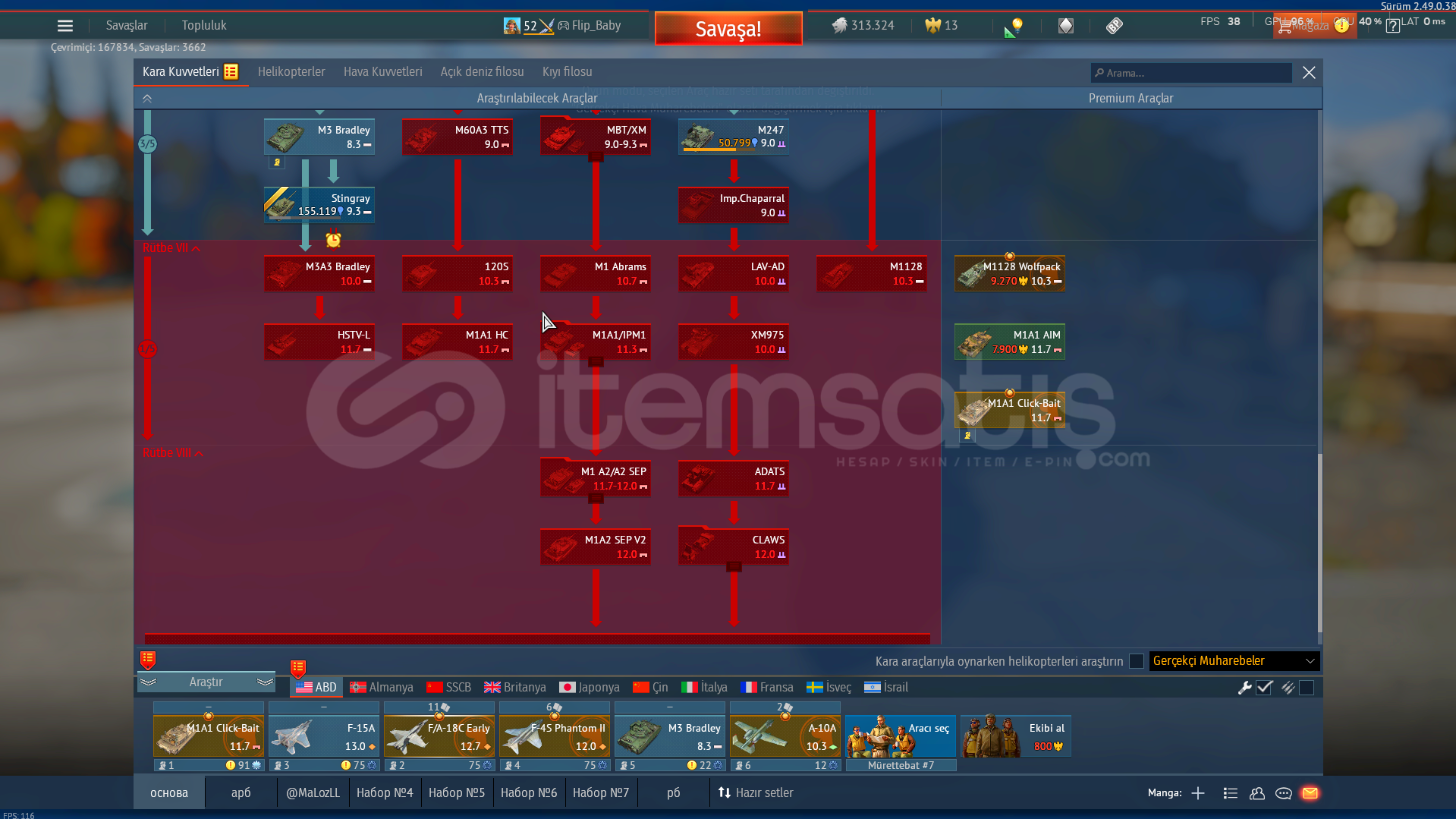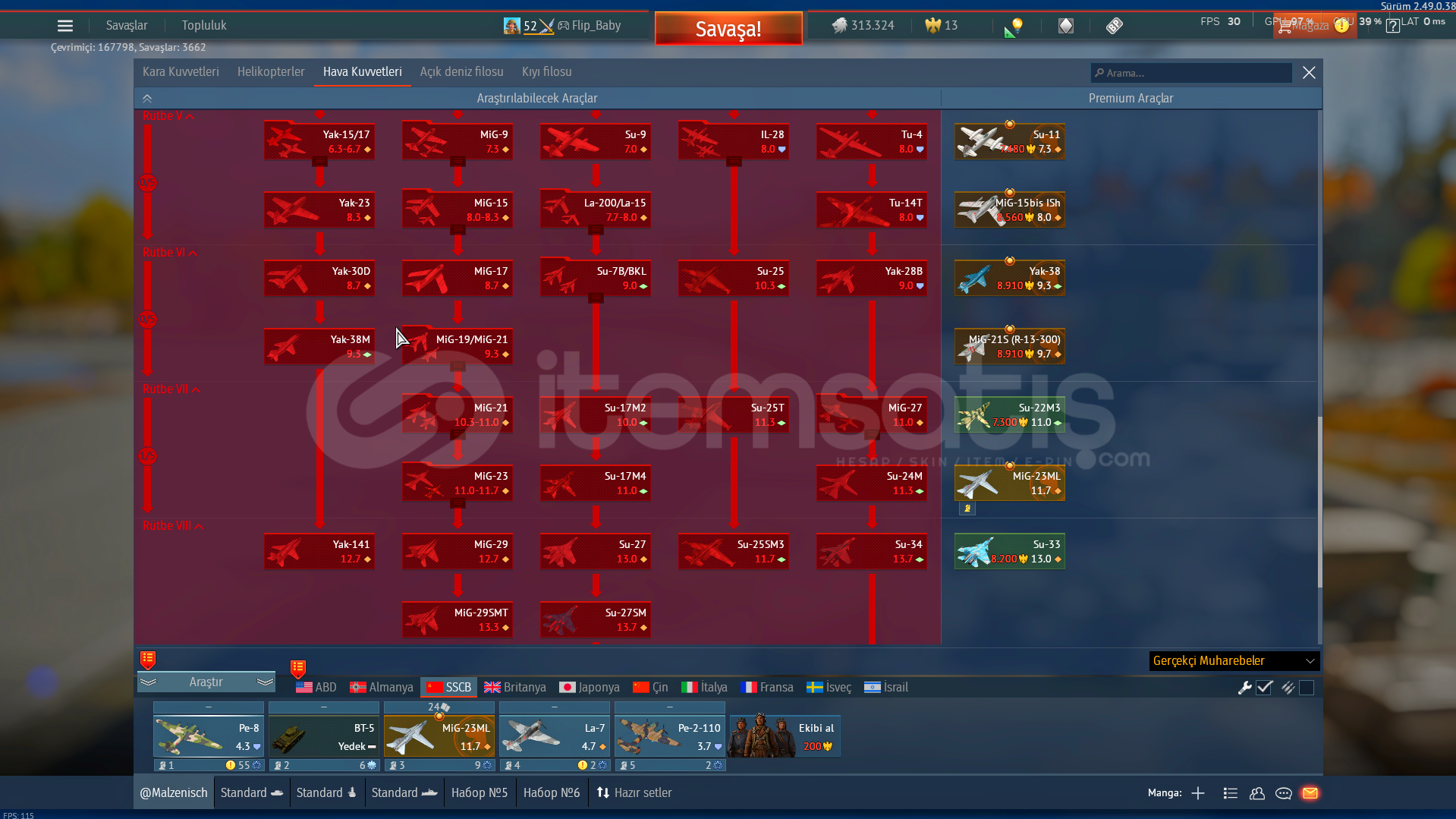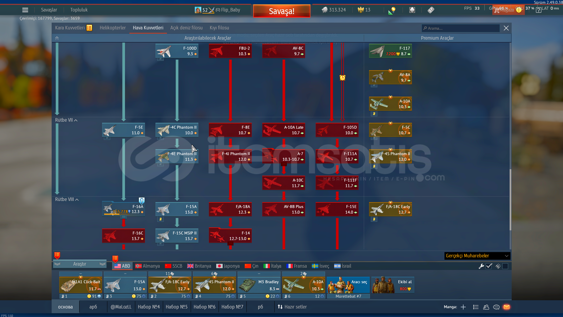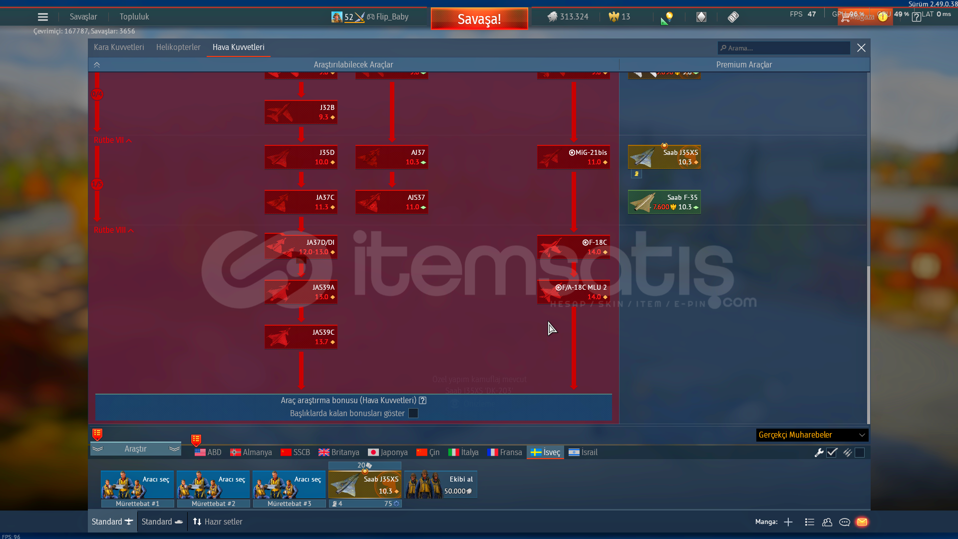 İçindekinler Fotoğrafta Göründüğü GibidirPremium Araçlar:F/A18 EARLYM1A1 CLİK BAİTMİG23MLMİRAGE F1C 200SAAB J35X5F4S PHANTOM IIA5CA10AAV8ASaab J35X5ÖNEMLİ NOT:GİRİŞ BİLGİSİNE SAHİP OLDUĞUNUZ HESABIN İADESİ YOKTURÖNEMLİ NOT: HESAP PAYLAŞIMLIDIRÖNEMLİ NOT: ŞİFRE VE MAİL DEĞİŞTİRİLEMEZ