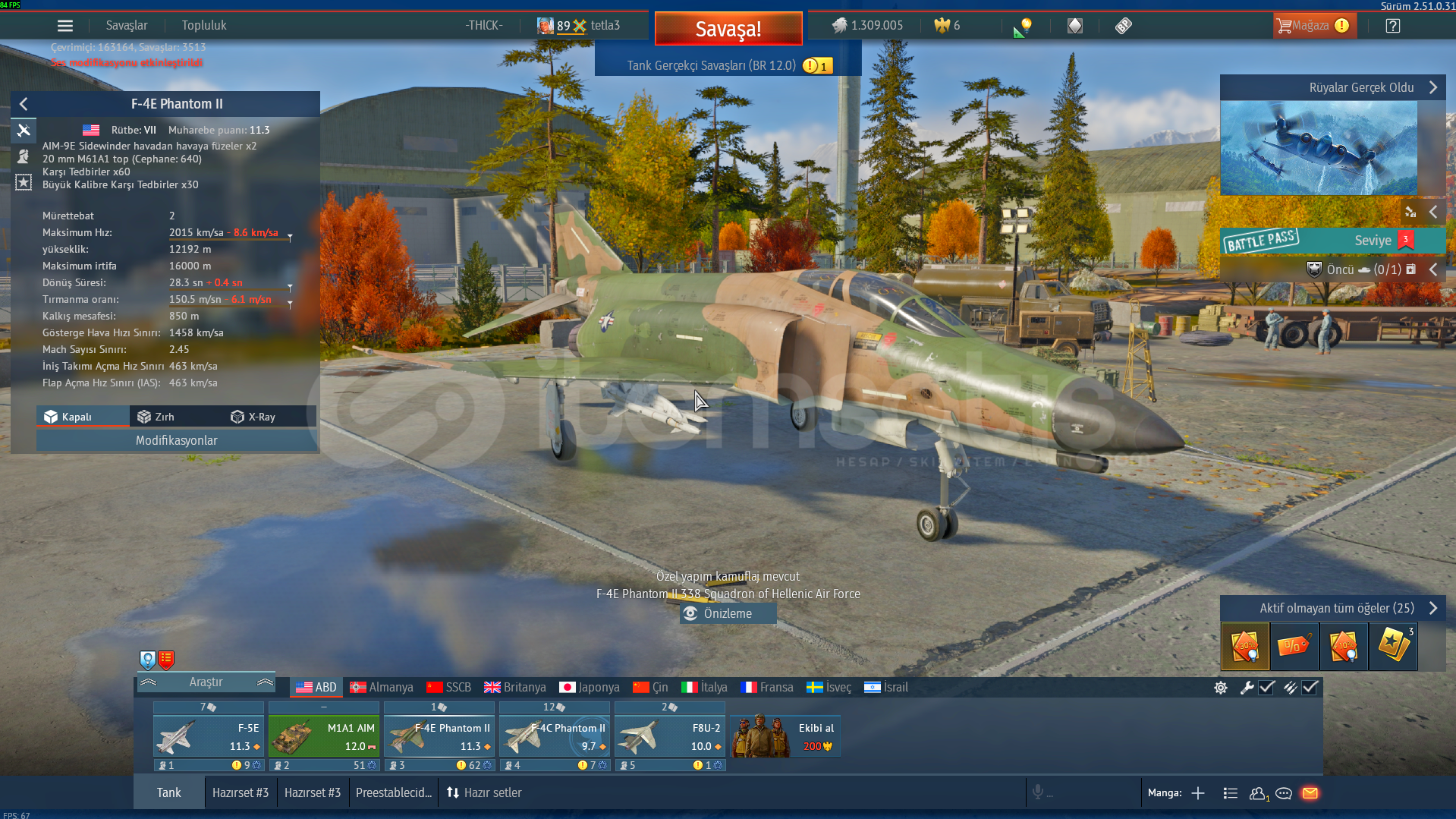 M1A1 AİM T80UK F5E F4E F4C