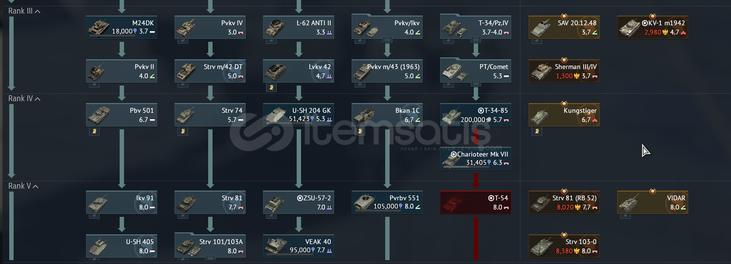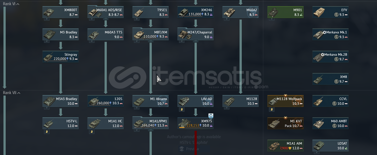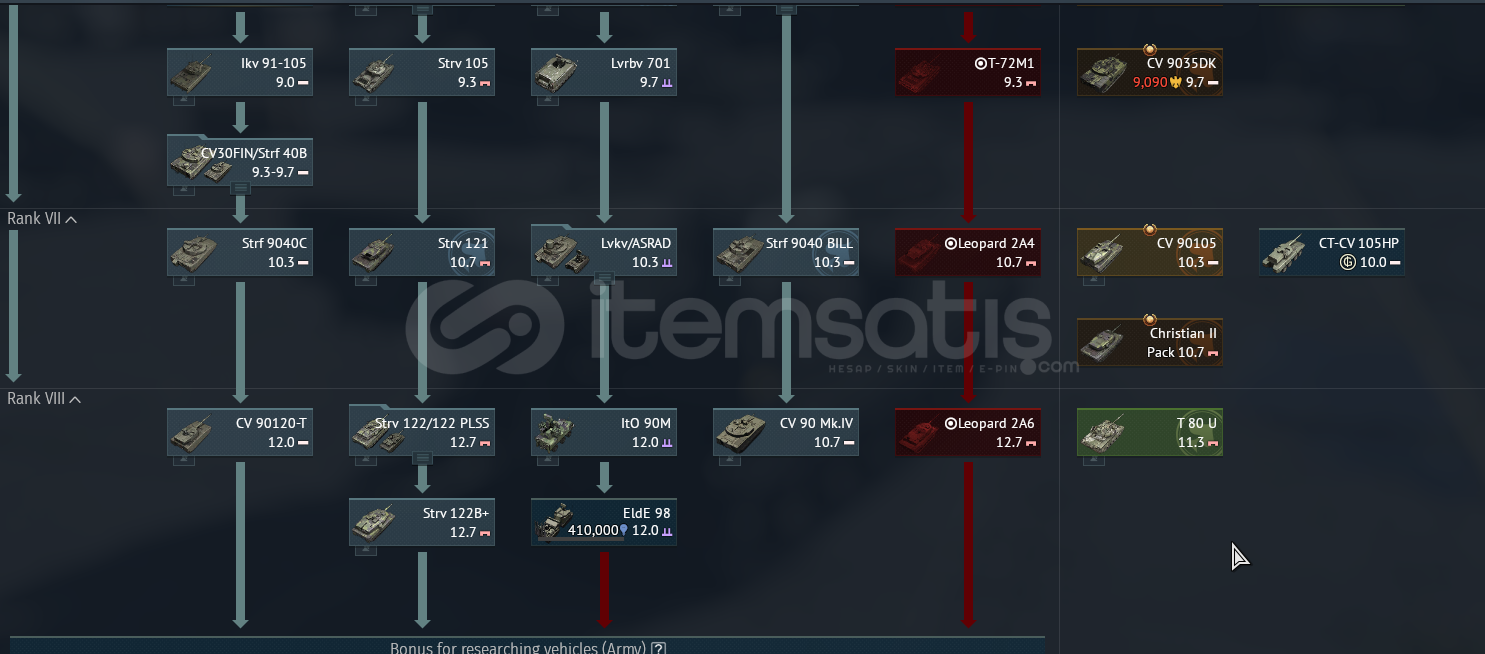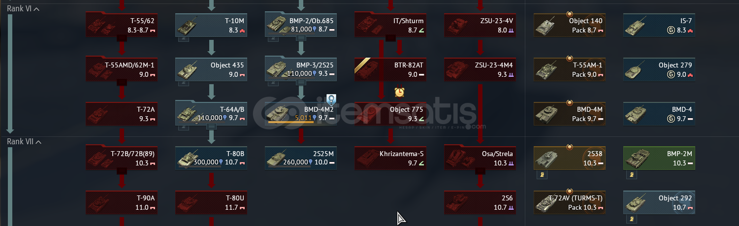 İsveç ağacı finlandiya tankları hariç ve helikopterler hariç bitmiştir, çin hava ve tank bitmek üzeredir, amerika tank bitmek üzeredir 5-6 tank kalmıştır, fransa tankın yarısı kasılmıştır tier 6 dadır, rus tank tier 7 den 8 e geçmek üzere, rus hava tier 8 e geçmek için 3 araca ihtiyacı vardır, ingiltere tankın yarısı kasılmıştır, amerikan helilerinde ah-6m kasılmıştır,