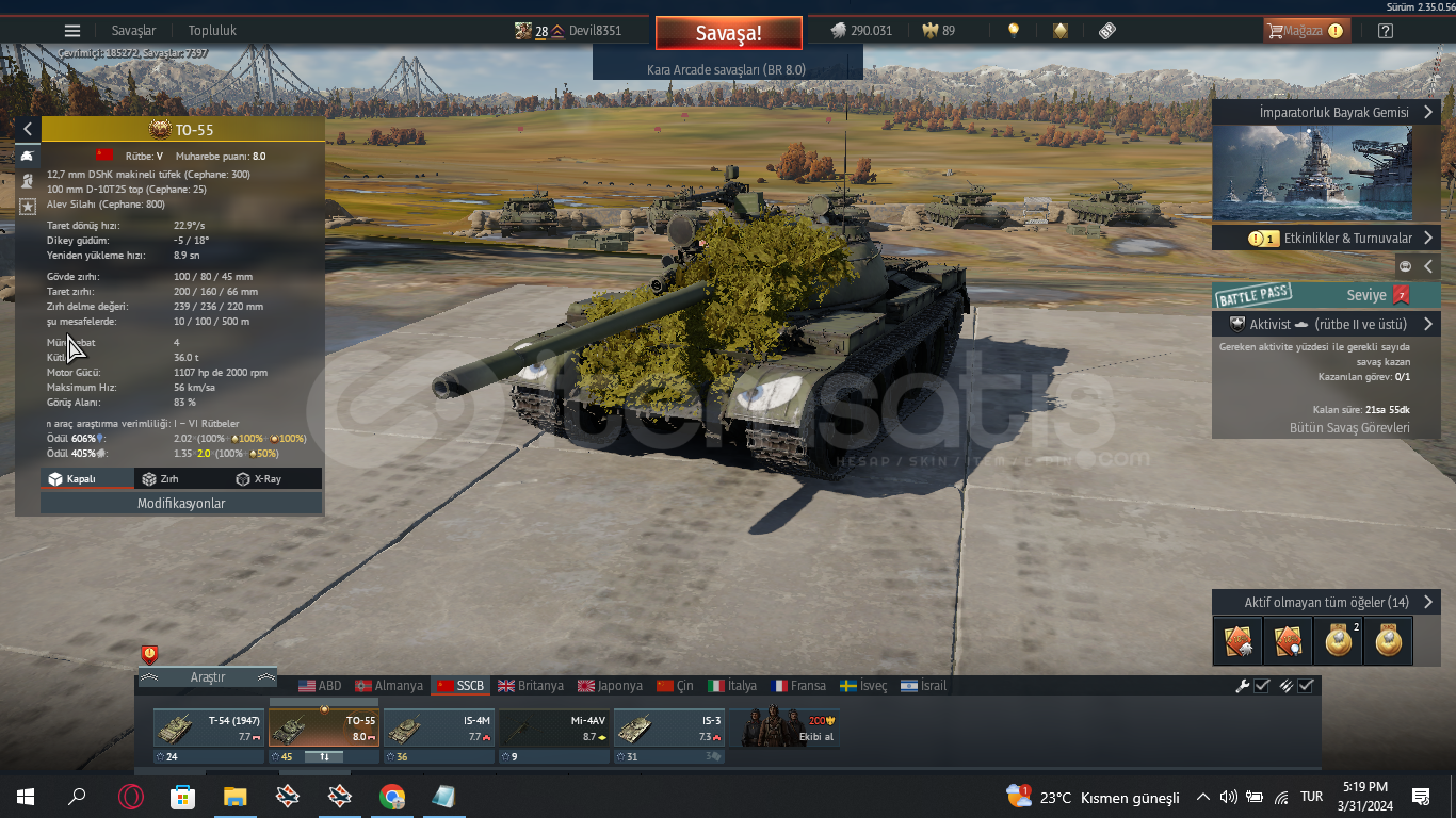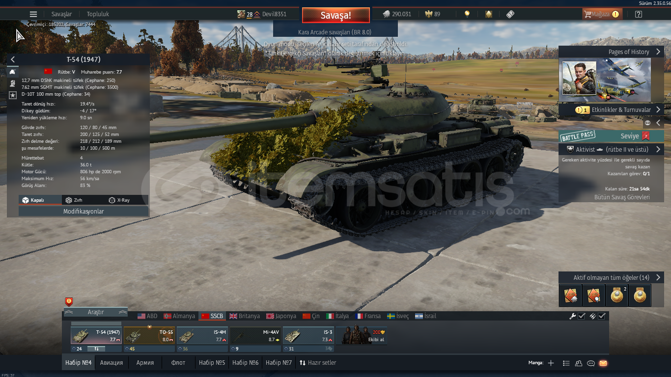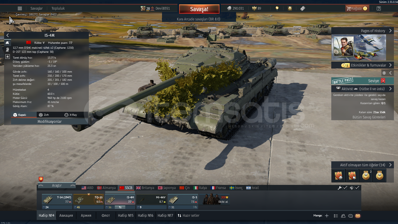 rusya kasılıdır tier 6 tankları açıktırpremium to 50 tankı vardır churchil gibi ateş püskürtmektedirıs3 ıs 4 tankları bulunmkta200 gün premiumu bulunmakta