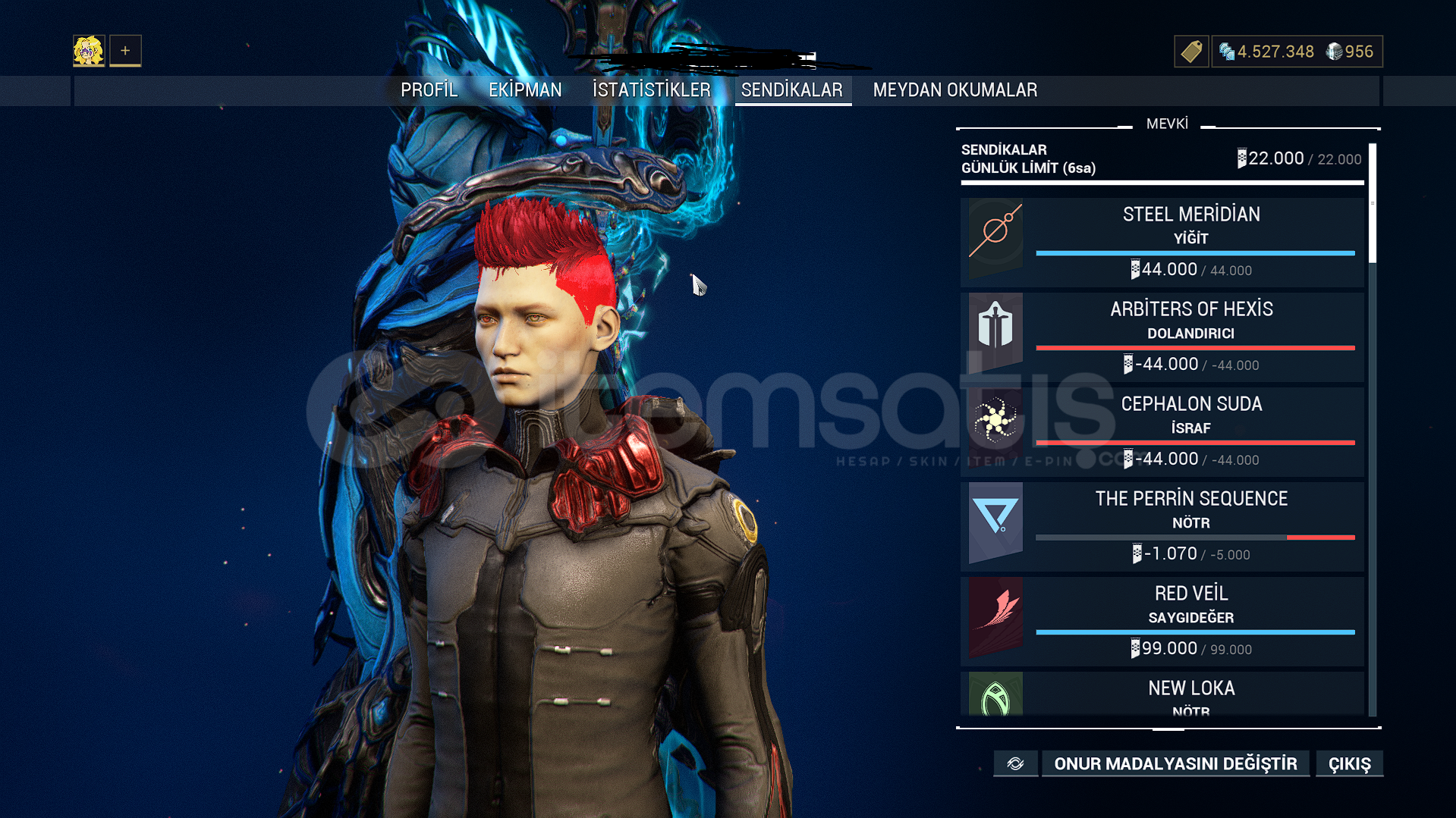 👤 Profile & ProgressionMastery Rank: 12 - Gold Seeker.Rank Progress: 21,565 Affinity required for MR 13.Clan: Independent (Not in a clan).Death Marks: Stalker.Star Chart: Most planets unlocked; The New War and The Sacrifice quests completed based on equipment.💰 Currencies & MaterialsPlatinum: 956.Credits: 4,527,348.Void Traces: 517.Endo: 5565🛡️ Warframe Collection (All Rank 30)Wisp Prime: (3 Forma installed, includes custom cosmetics).Gauss Prime.Nekros Prime.Excal...