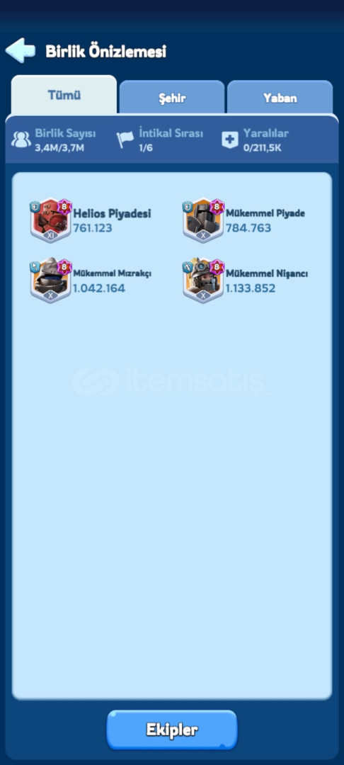 576m gücünde emek verilmiş , helios piyade mevcut istenirse nişancı veya mızrakçı açılabilir vip10, akıllıca güçlendirilmiş, 3.7m askeri bulunan 1700 mitik parçası mevcut kostüm görünüm bufflarının hepsi var. Ayrıca çantası dolu fc3 farm hesabı mevcut.