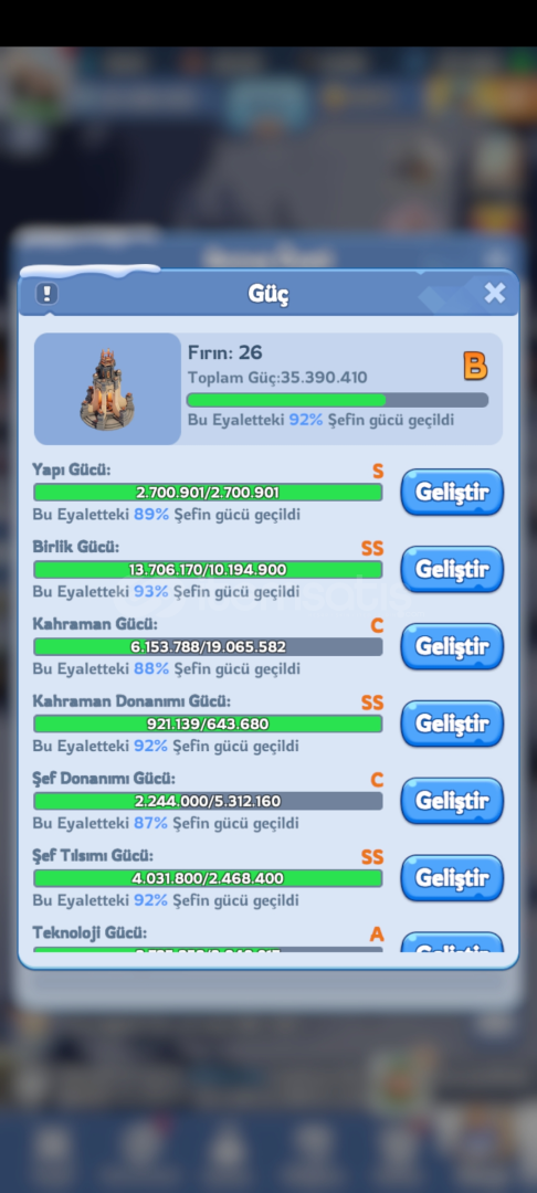 27 lvl fırın320k elmas2 inşaat açık43 m güçResimlerde göründüğü gibiAktif bir ittifak2...