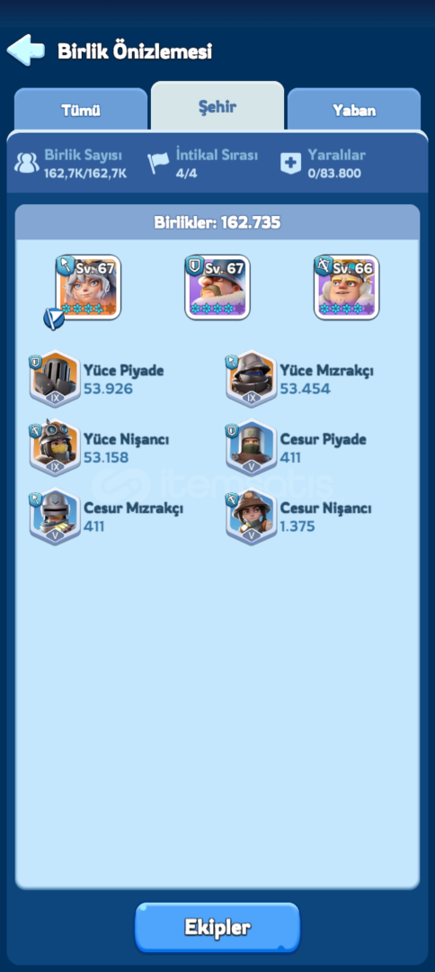 Fırın 26.seviyedir ve 27.seviyeye basılabilir şuan.160K yüce birlik vardır.Kahraman donanımı olarak ana 3 kahramanın resimlerde gözüküyor onların donanımını 55.seviyeye kadar yükselttim.Hesapta 60k cevher vardır.Kaynaklar fulldür.Full emek hesaptır, detaylı soru için yazabilirsiniz.Klanda r3 rütbesindeyim ve eyalet fişi mevcuttur istediğiniz eyalete transfer yapabilirsin...