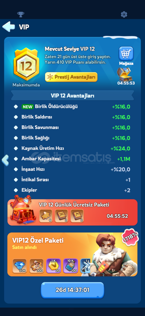 Merhaba VİP seviyesi 12 meteor intikal var Firin 9 level