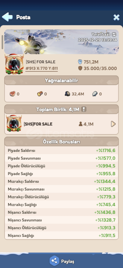 Hesabimi 2 senedir aktif olarak oynamaktayim kizim ile ilgilenmem gerektiği için oyuna vakit ayiramiyorum UYGUN FIYATA satiliktir 913 eyal...