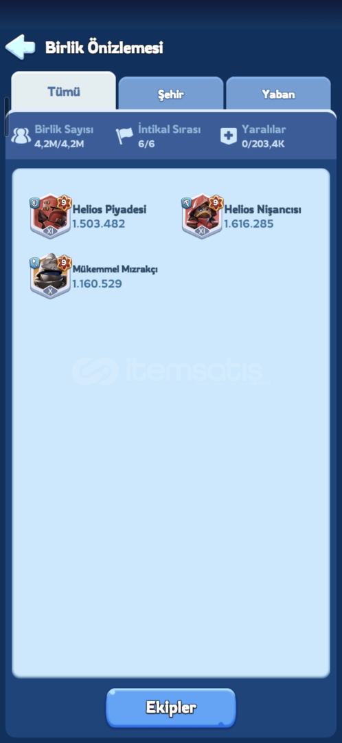 Hesabimi 2 senedir aktif olarak oynamaktayim kizim ile ilgilenmem gerektiği için oyuna vakit ayiramiyorum UYGUN FIYATA satiliktir 913 eyalette, FC9 SEVIYE FIRIN FC10 olması için 5 kademenin 3'ü tamamlandi son 2 kademe kaldi HELIOS PIYADE VE NISANCI AKTIFTIR MIZRAKCI IÇIN SON BIR KADEME KALDİ MALZEME MEVCUTTUR. istatistikler resimlerde gorulmektedir VIP10 MEVCUTTUR.