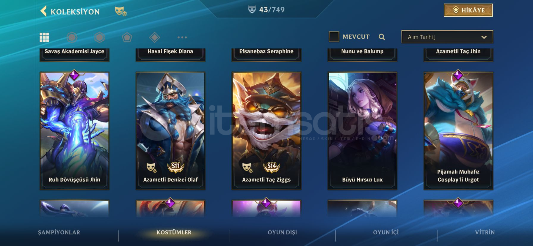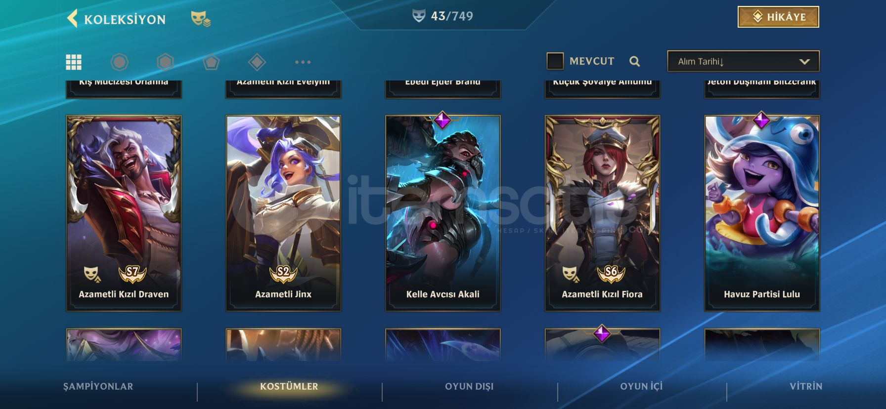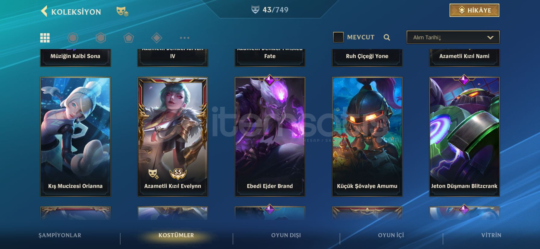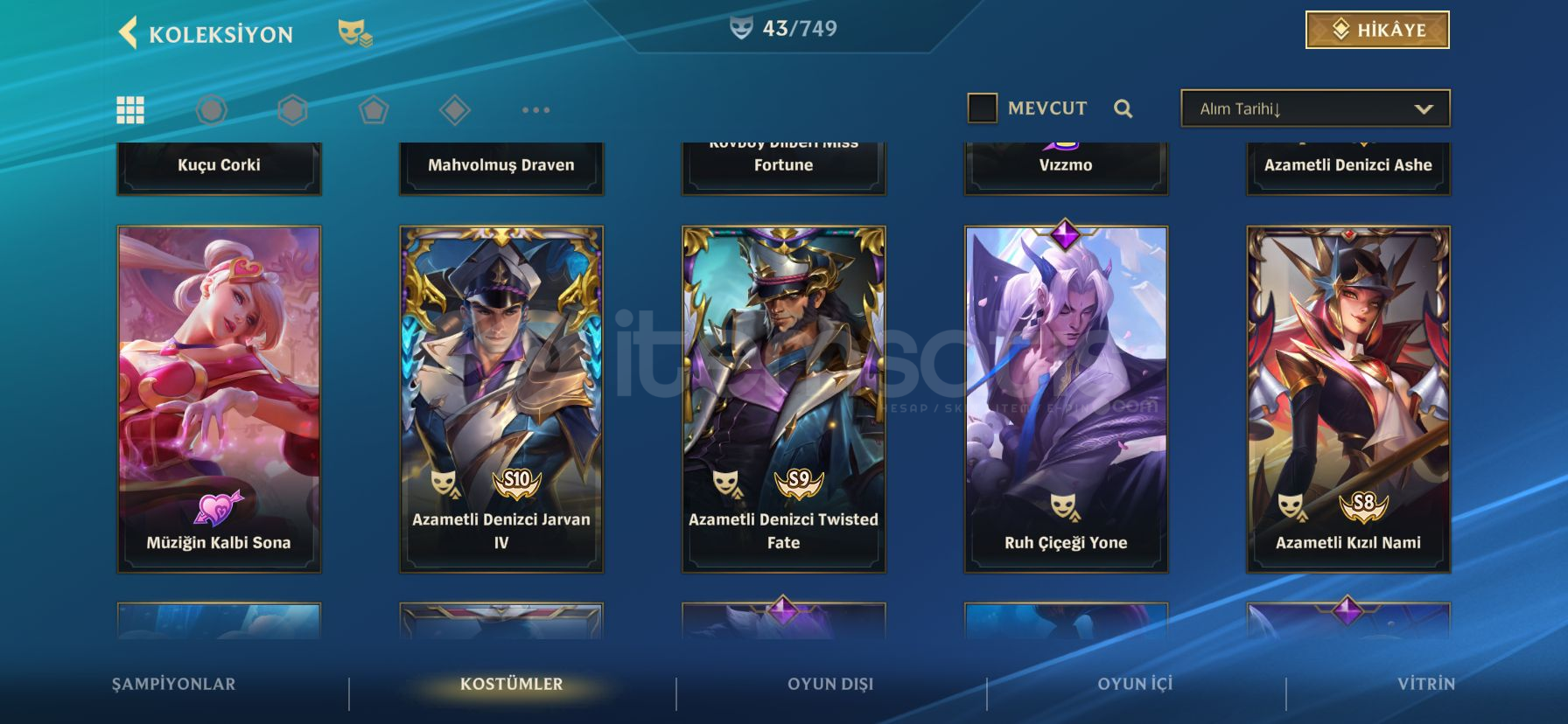 -43 kostüm Dünyalar YIkan Nasus Asi Denizci Garen Azametli Lulu ek olarak vardır-Sezon2 den beri aktif hesap-Master Peak-102 simge vardır-74 ifade-Ufak bir pazarlık payı vardır